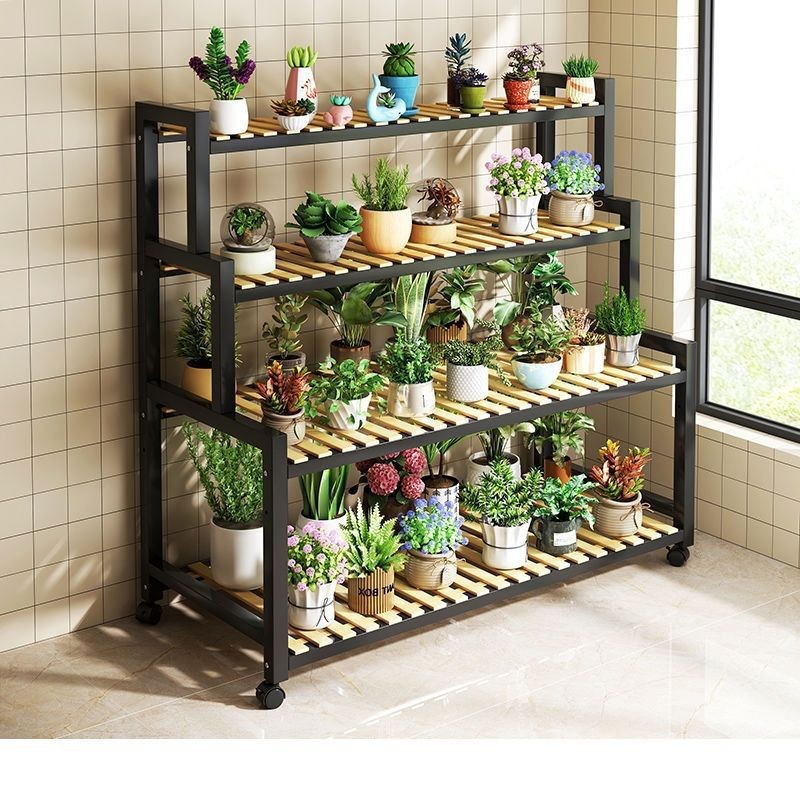 花架置物架阳台花架子客厅落地式阶梯式带轮可移动多层花盆栽托架