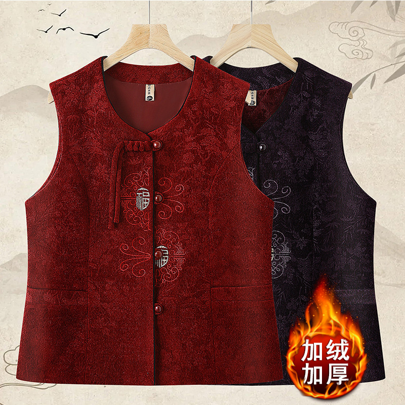 中老年女装加绒加厚马甲外套妈妈装坎肩新款奶奶中式盘扣保暖背心