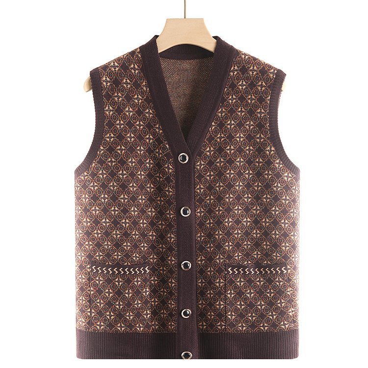新型中高年ベストセーター肩ニット老人ベストおばあちゃんカーディガンベストコート高品質