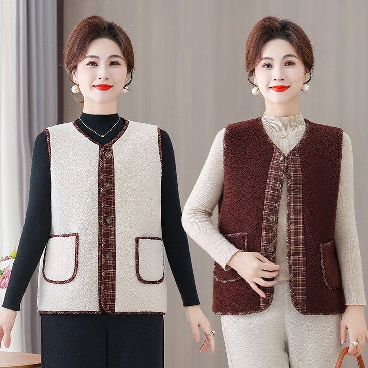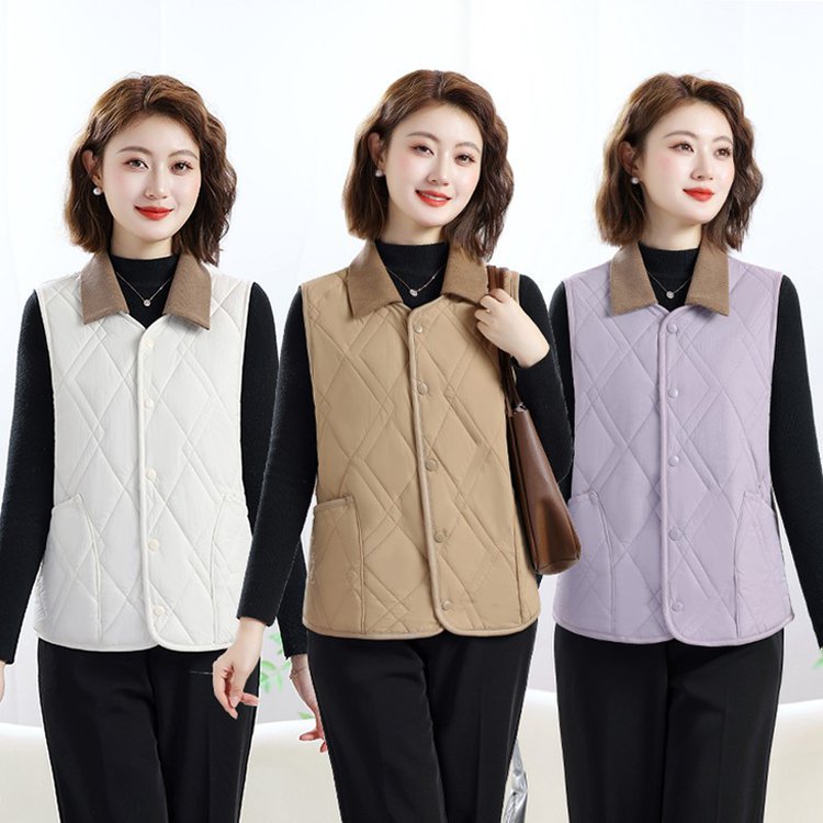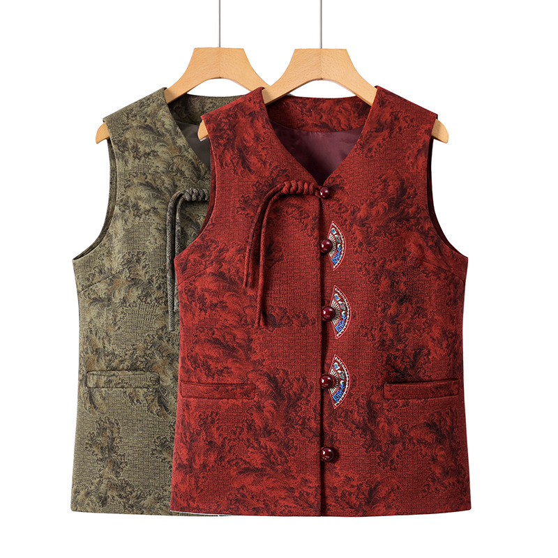 中高年の婦人服のおばあさんの秋冬服のベストは綿のベストを挟みます。