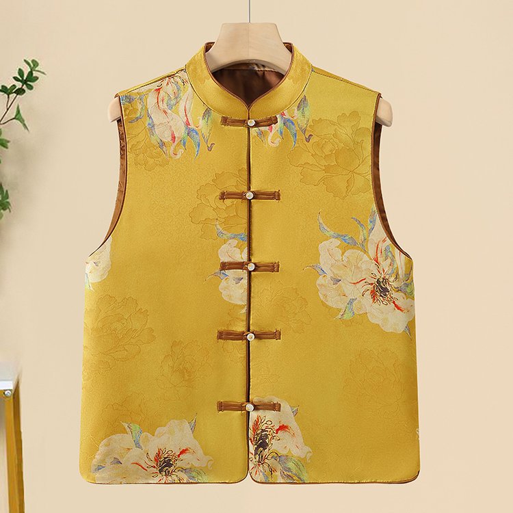 新中国風刺繍馬甲女装春のゆるい大振り子馬ジャケットの両面に錦織を着ている