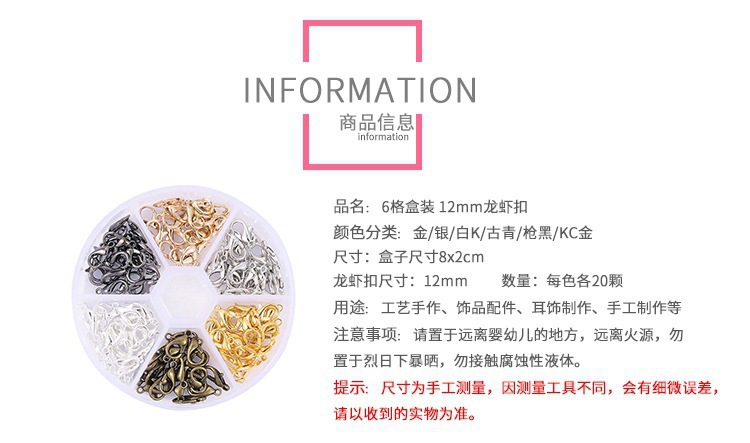 12mmロブスターバックルの箱の部品のネックレスのブレスレットの接続ボタンの最後のボタンのDIYの手作りのビーズの材料の卸売り