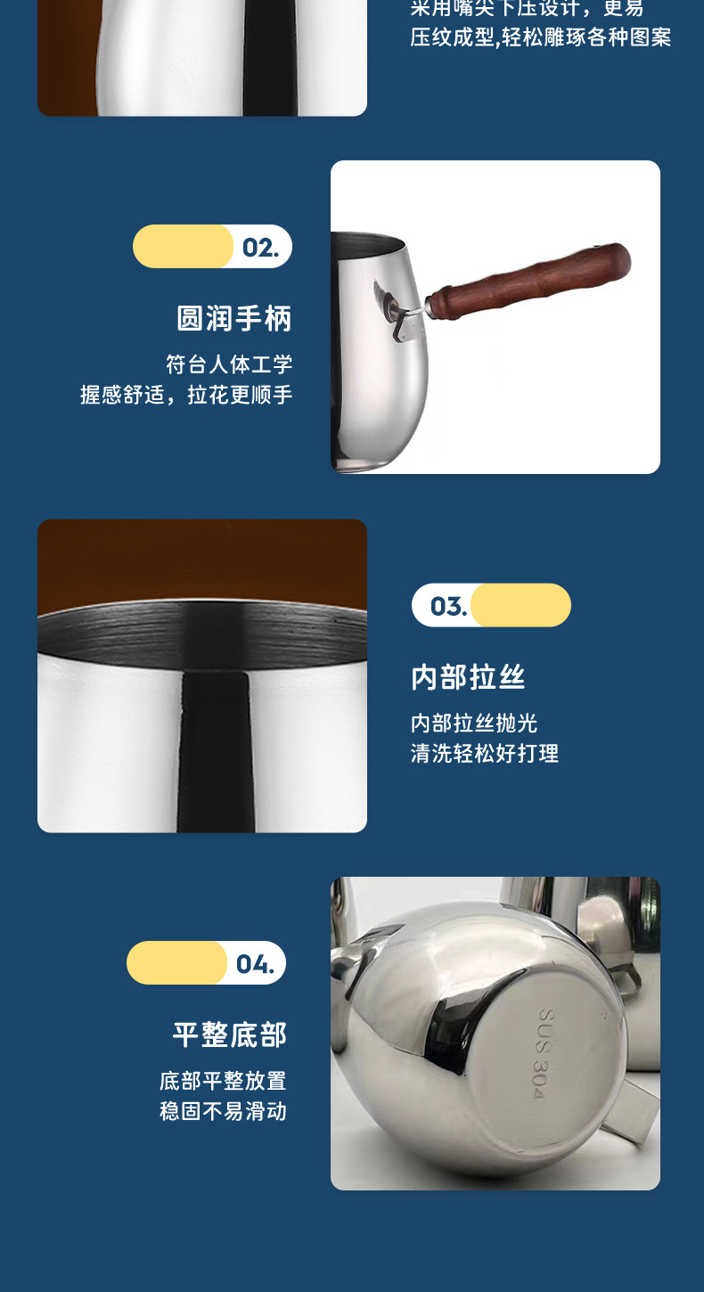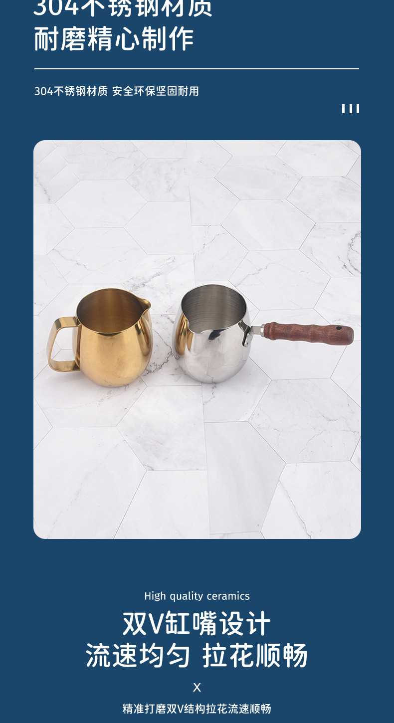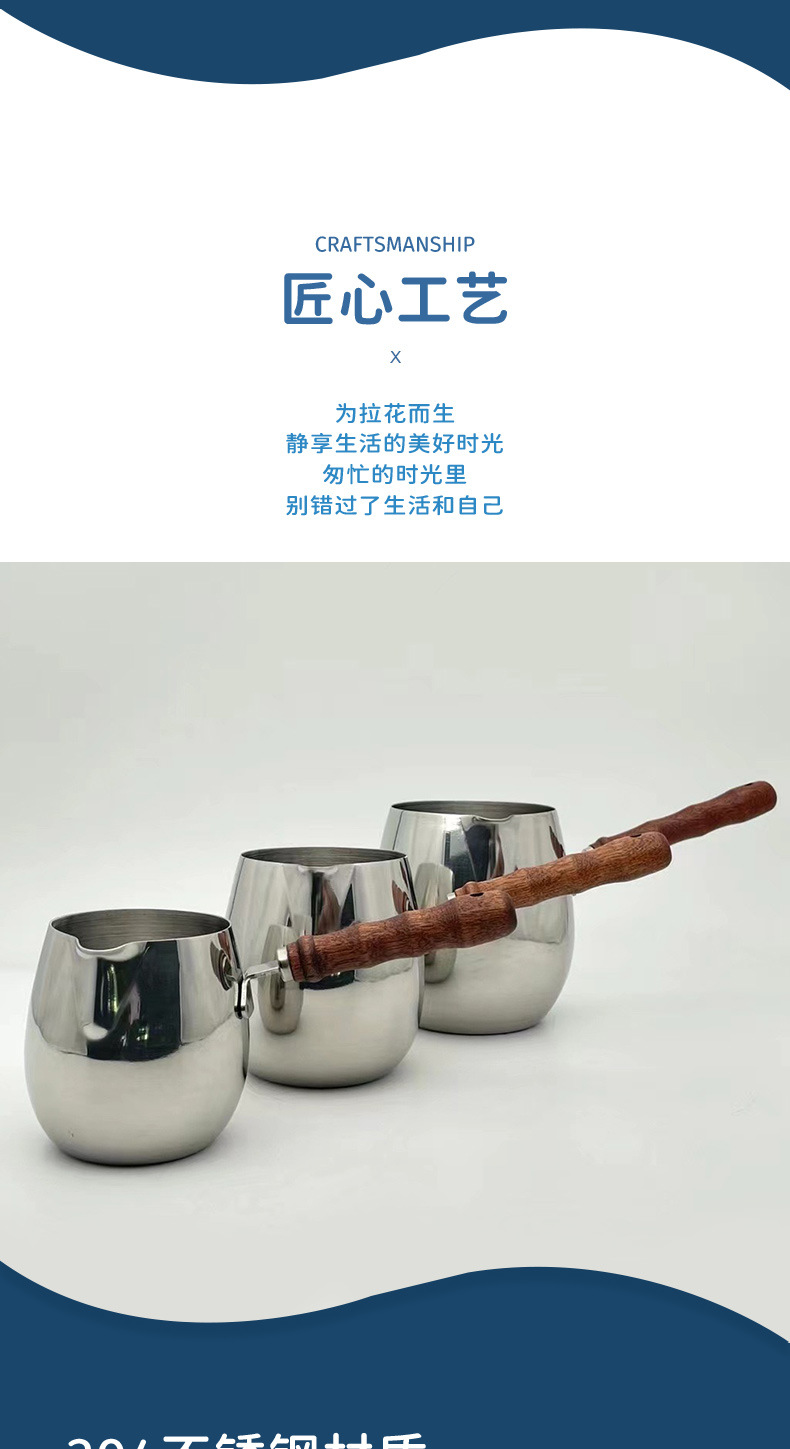 ステンレス防漏口木柄コーヒーミルクカップ蓋付き手持ちミルクカップモカポットコーヒー用具が国境を越えて人気がある