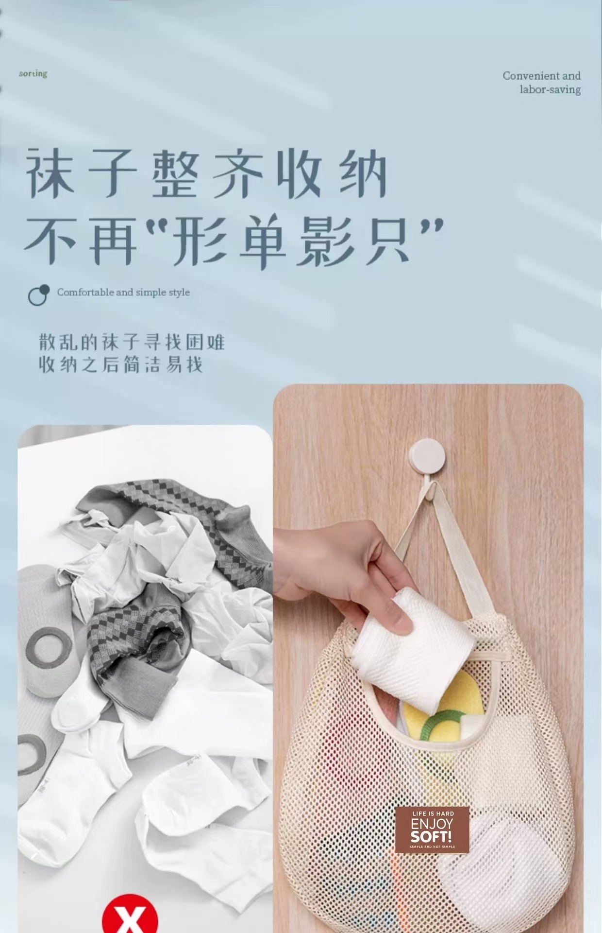 下着の靴下はネットのポケットを掛けて袋を収納します。