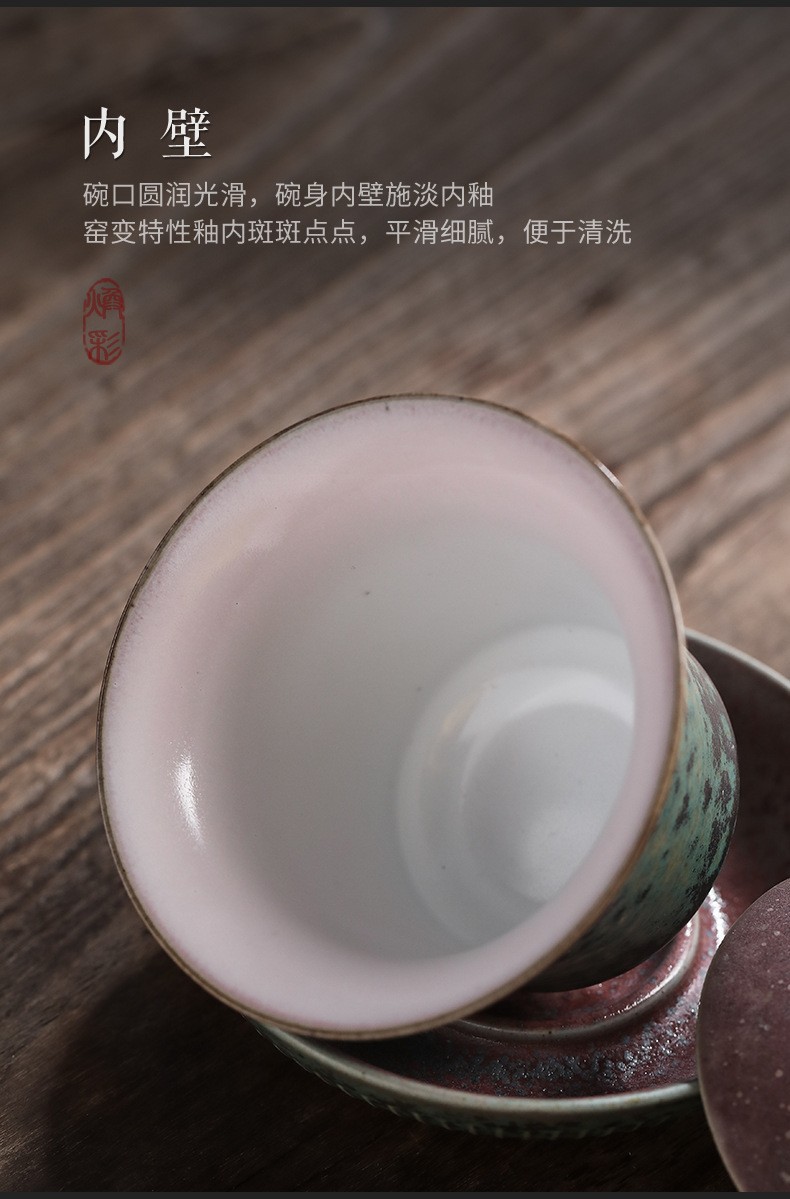窯変熙彩三才蓋碗陶磁器工夫茶器日本家庭用仙鶴大中号茶杯復古敬茶碗