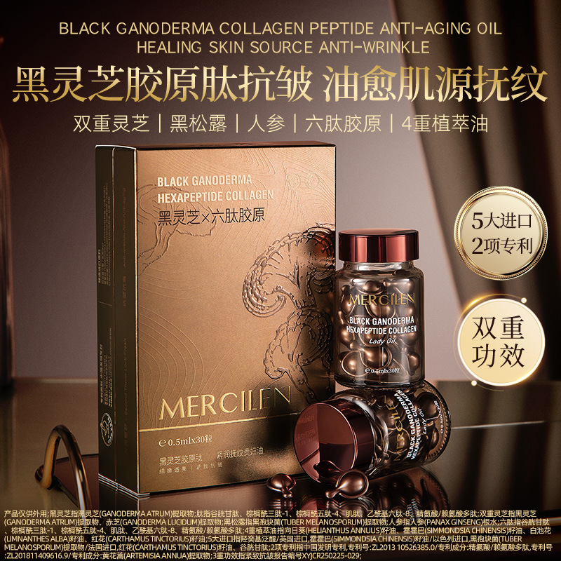 梦希蓝黑灵芝胶原肽抗皱紧润抚纹贵妇油30粒面部护理次抛精华油