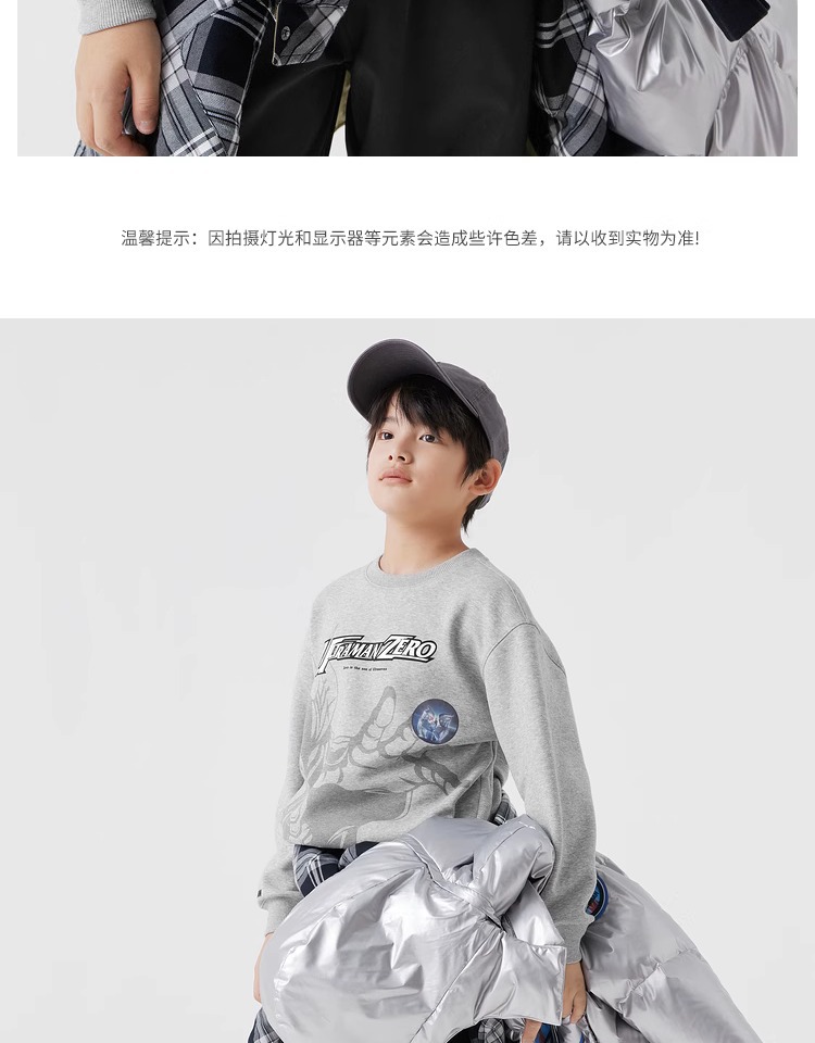 男の子用裏起毛スウェットシャツ、子供服、男の子用スウェットシャツ、新作秋冬裏起毛厚手快適ラウンドネックカジュアル