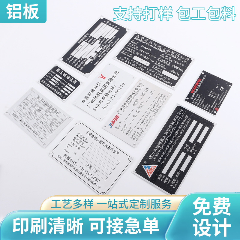 東莞シルクスクリーンスタンピング金属銘板番号機器ステンレス鋼腐食銅アルミプレート看板機械パラメータ看板