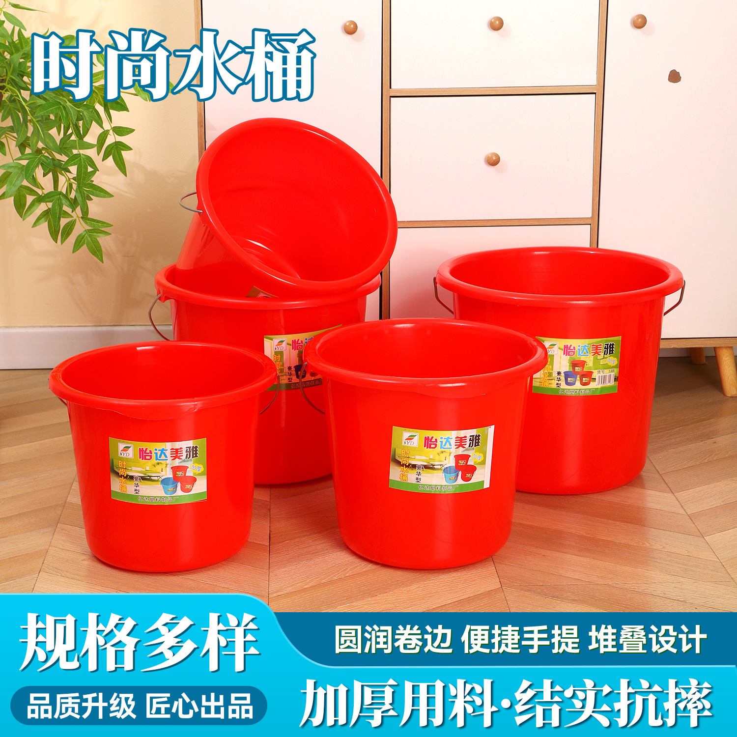 时尚水桶塑料桶学生水桶家用红色清洁手提桶工地圆形桶收纳pp塑料