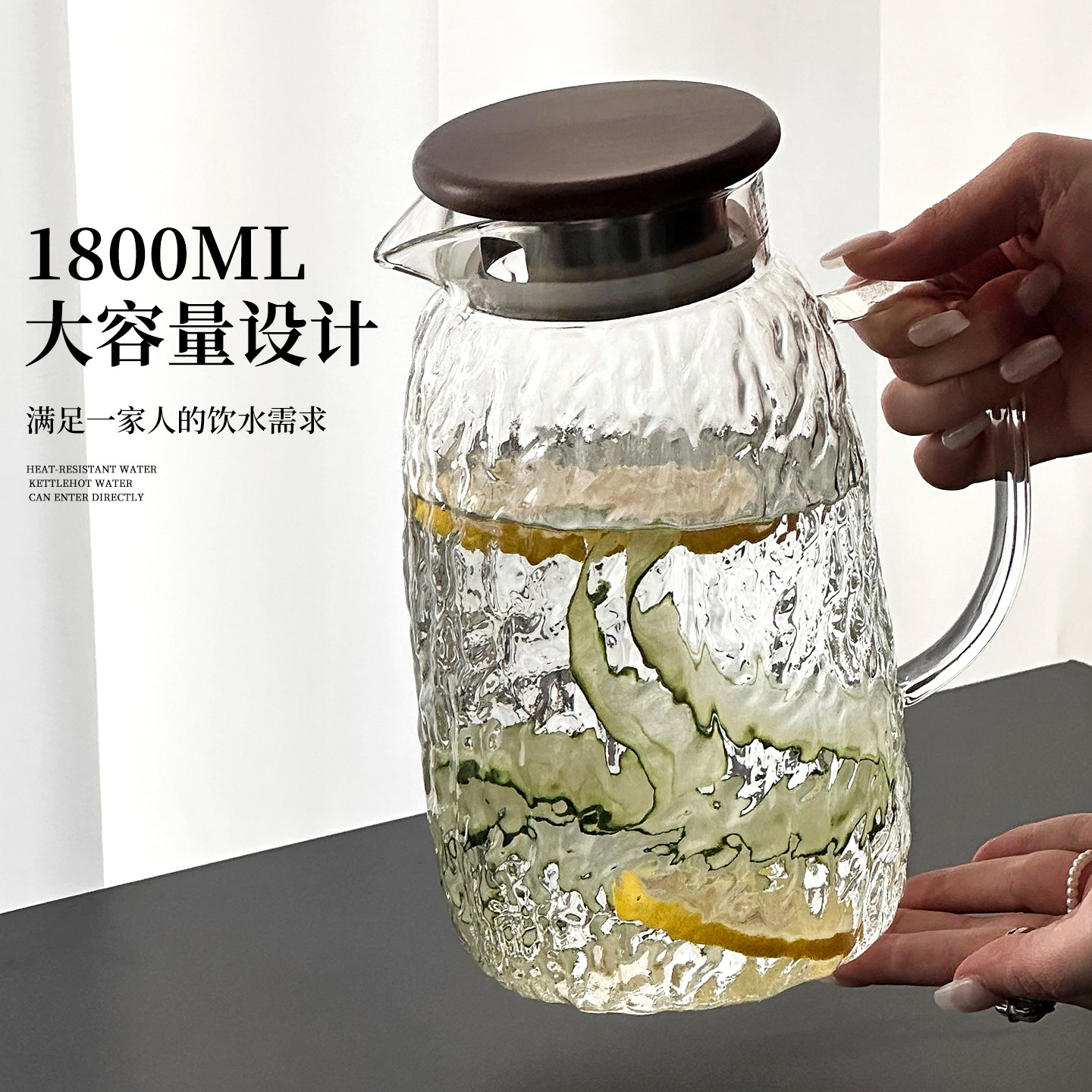 树皮纹高硼硅玻璃冷水壶 家用大容量客厅玻璃果茶壶高颜值凉水壶