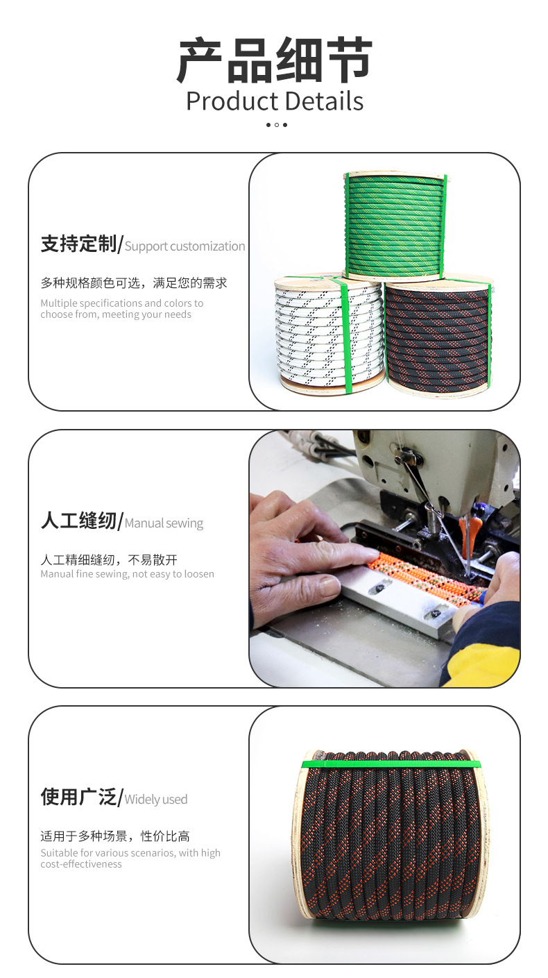 高分子ポリエチレンロープ登山ロープ高所作業クライミングロープ速降下ワイヤーコア救助安全ロープ卸売り