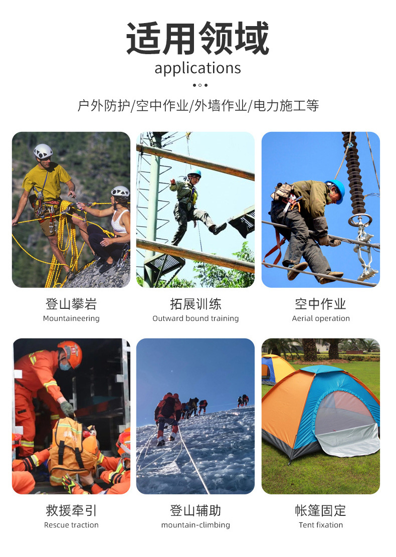安全绳高空作业攀岩绳涤纶锦纶尼龙绳子登山绳救援耐磨静力绳