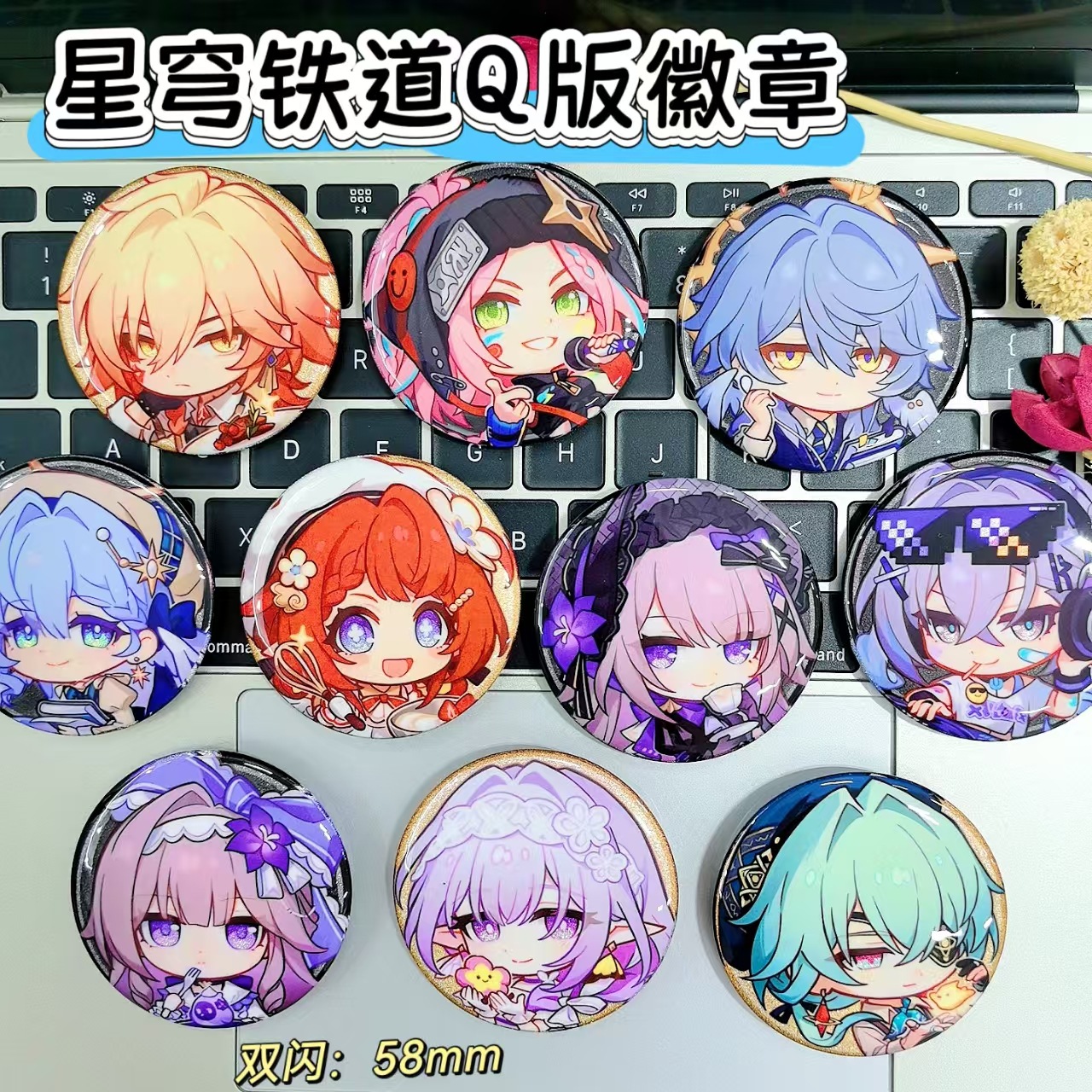 星空鉄道崩壊ゲーム Qバージョン周辺機器 58mm シルバーオニオン ダブルフラッシュバッジ 缶バッジ パインバッグバジ谷
