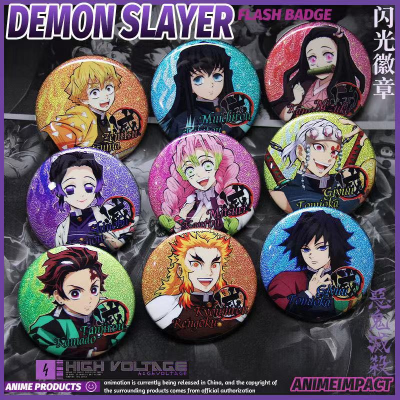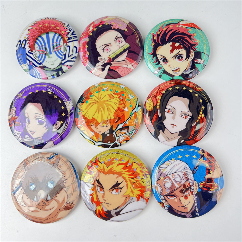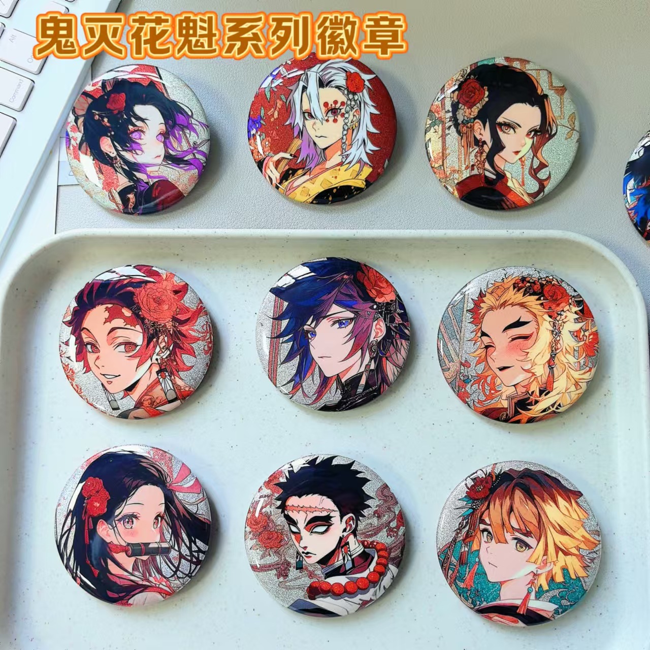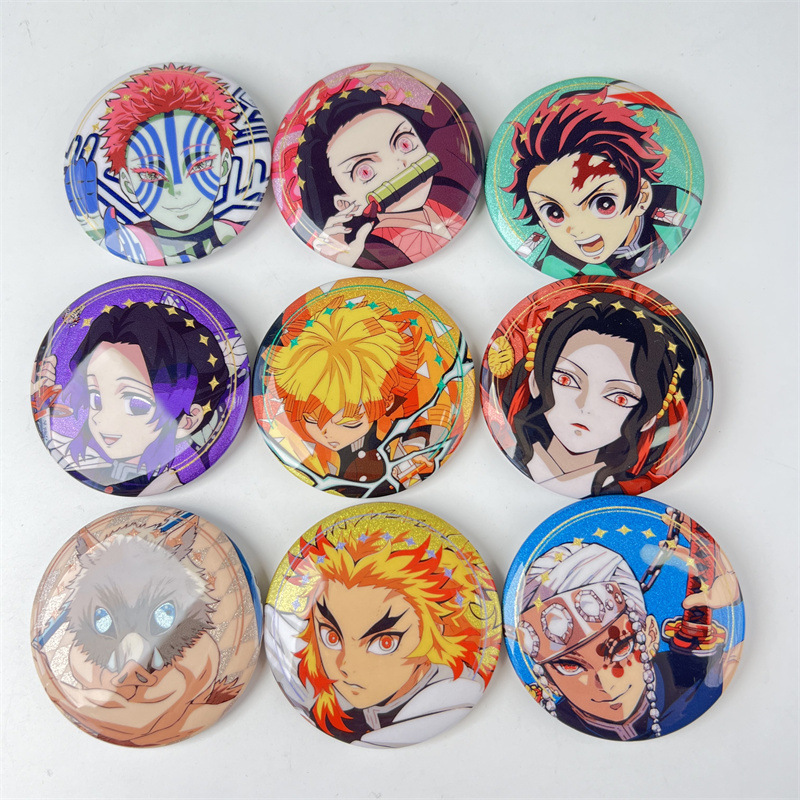 鬼灭之刃马口铁徽章胸针现货58mm马口铁胸章周边谷子双闪吧唧现货