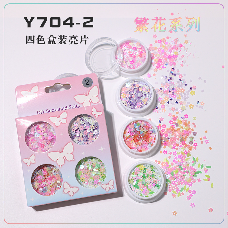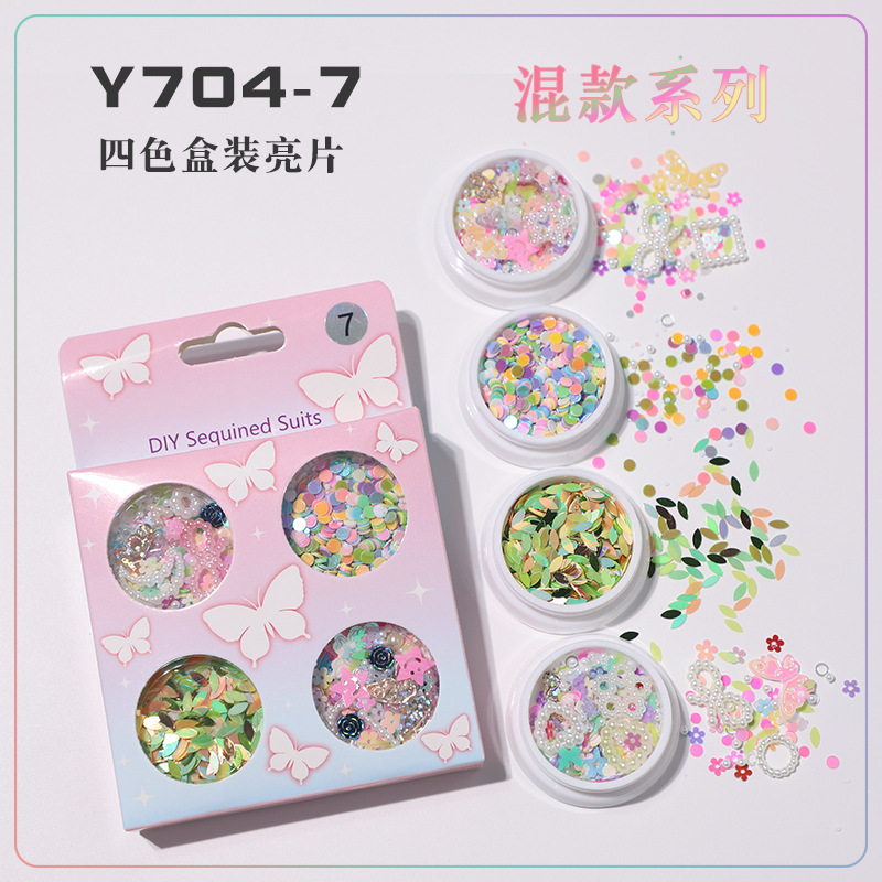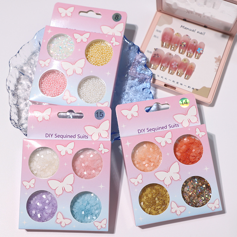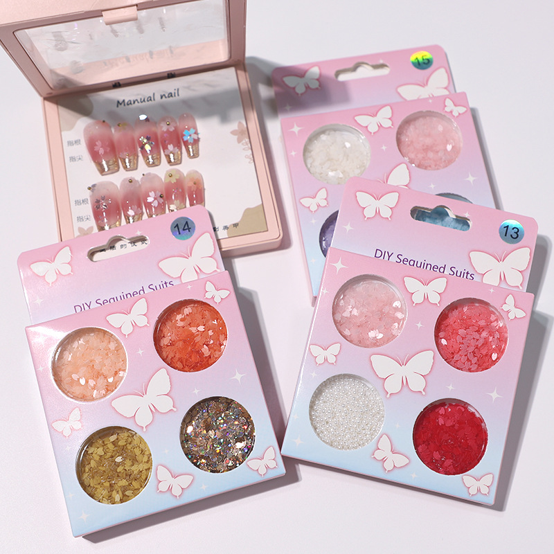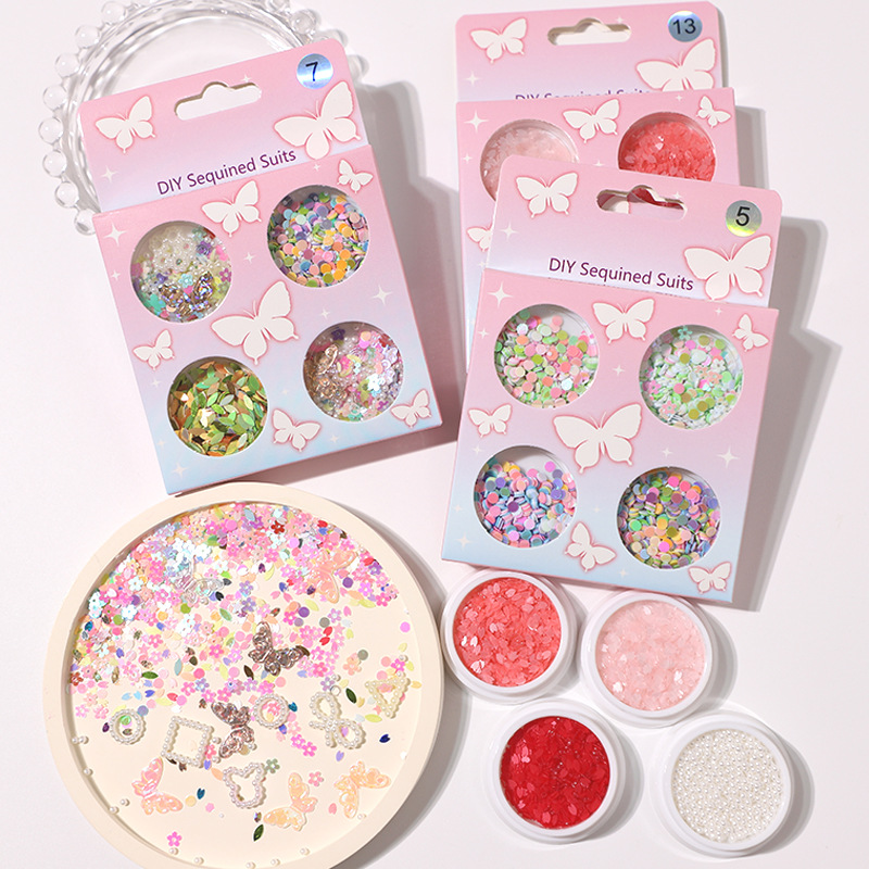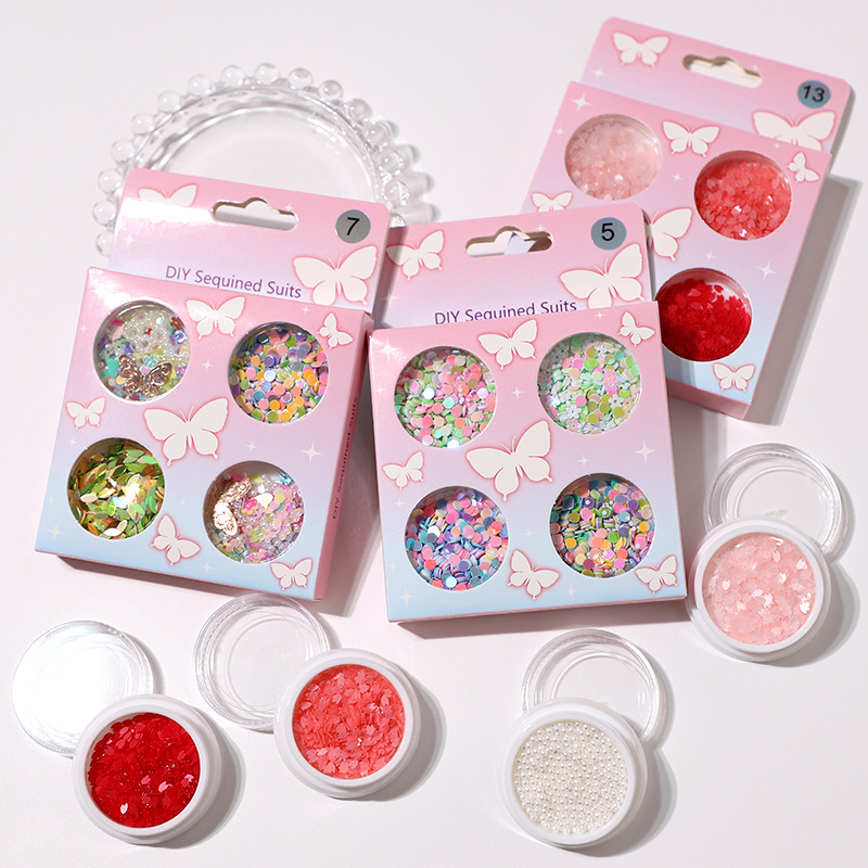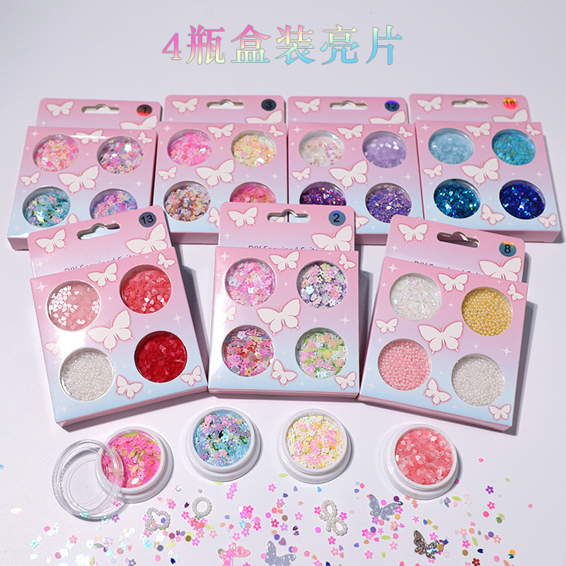 新款6格盒装超薄亮片蝴蝶美甲面部闪片装饰流沙笔DIY亮片现货批发