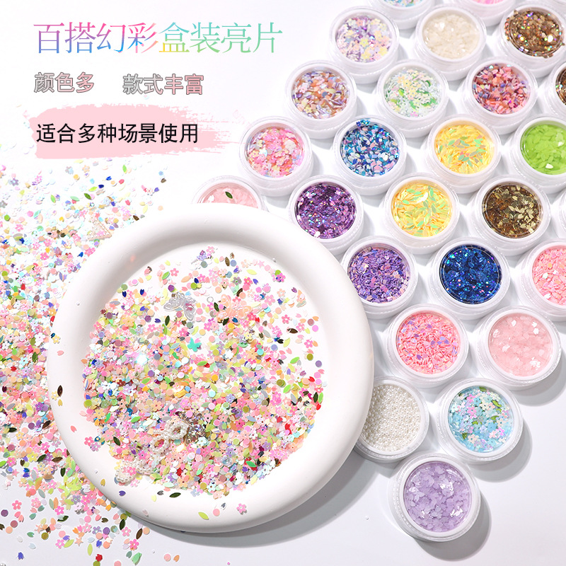 クロスボーダー6格ボックスPETスパンコール手作りDIYネイルアクセサリー環境保護スパンコール6格フラッシュスポット卸売り