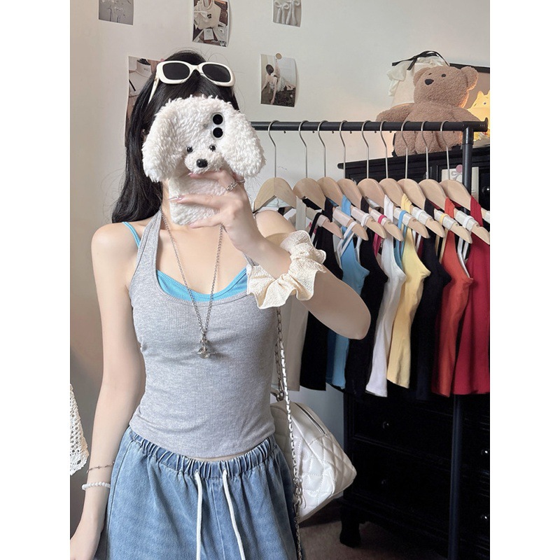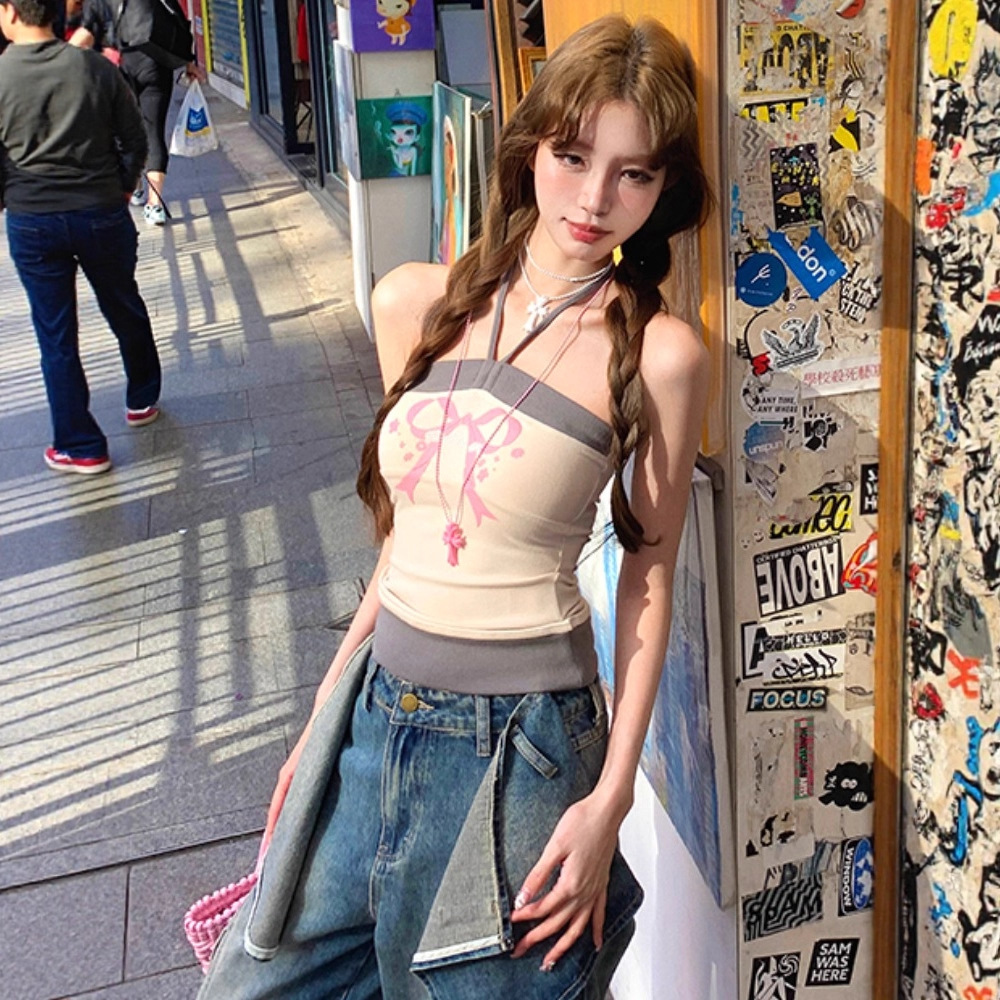 泰式独特蝴蝶结挂脖吊带小背心女夏季设计感内搭辣妹短款外穿上衣