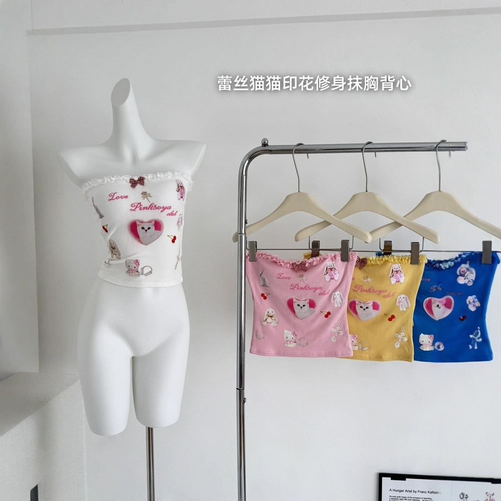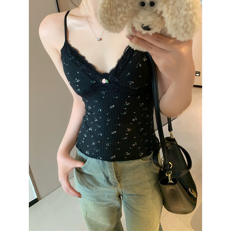 美式复古蕾丝花边抹胸背心女夏季新款设计感小众修身显瘦百搭上衣