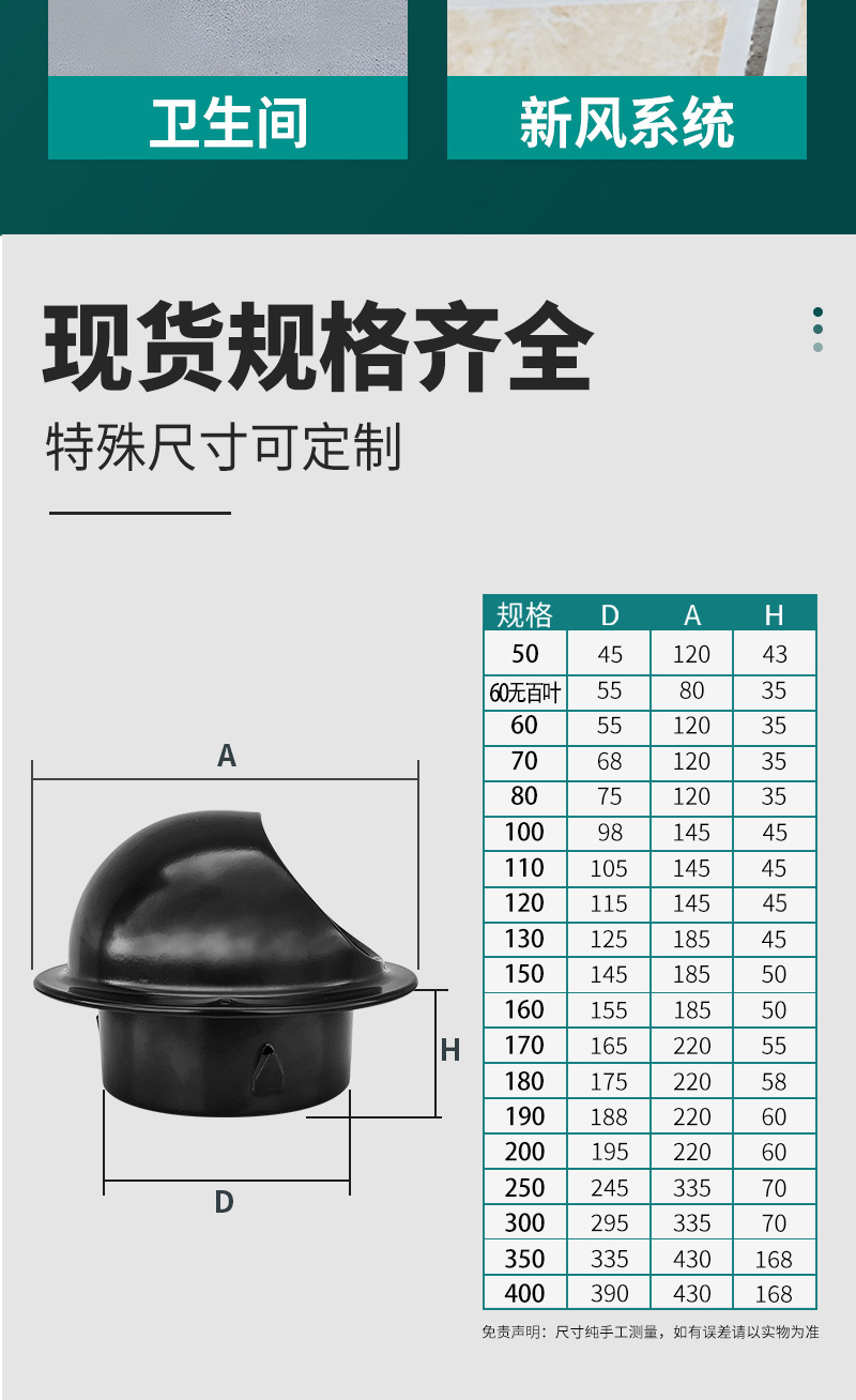 卫生间圆形管道防雨百叶通气帽排风口风罩风帽格栅通风口出风口