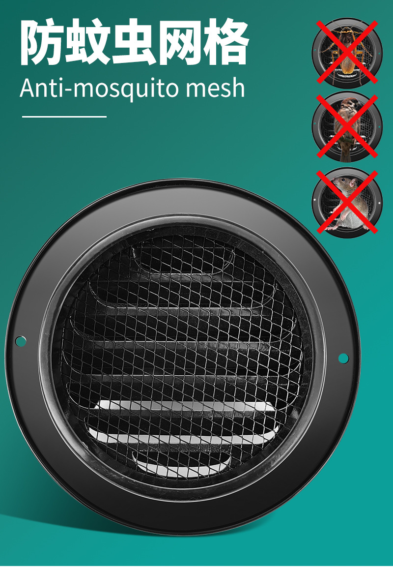 黒色円形グリル外壁排気カバー通気キャップ防雨カバー通風口ステンレス風キャップ通風口