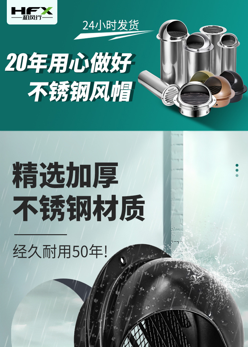 304ステンレスフード防雨カバー通風口通気排気フード油煙フード排煙管外壁201吹出口