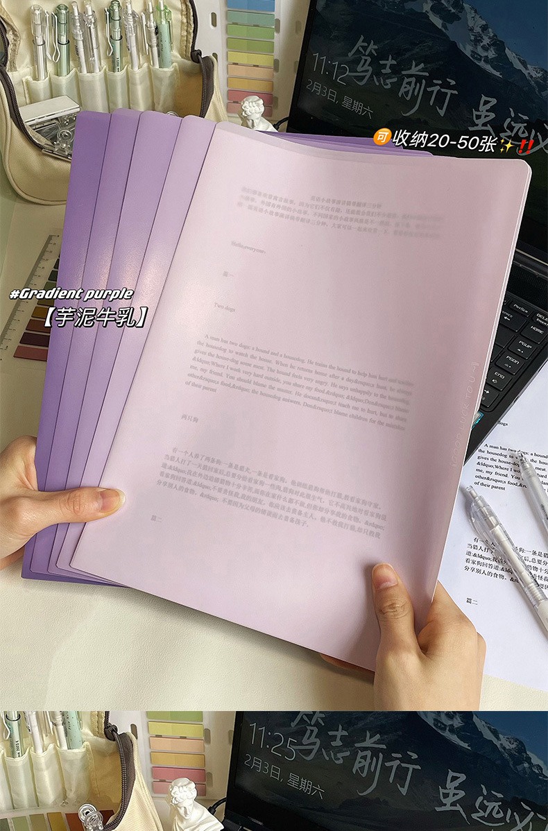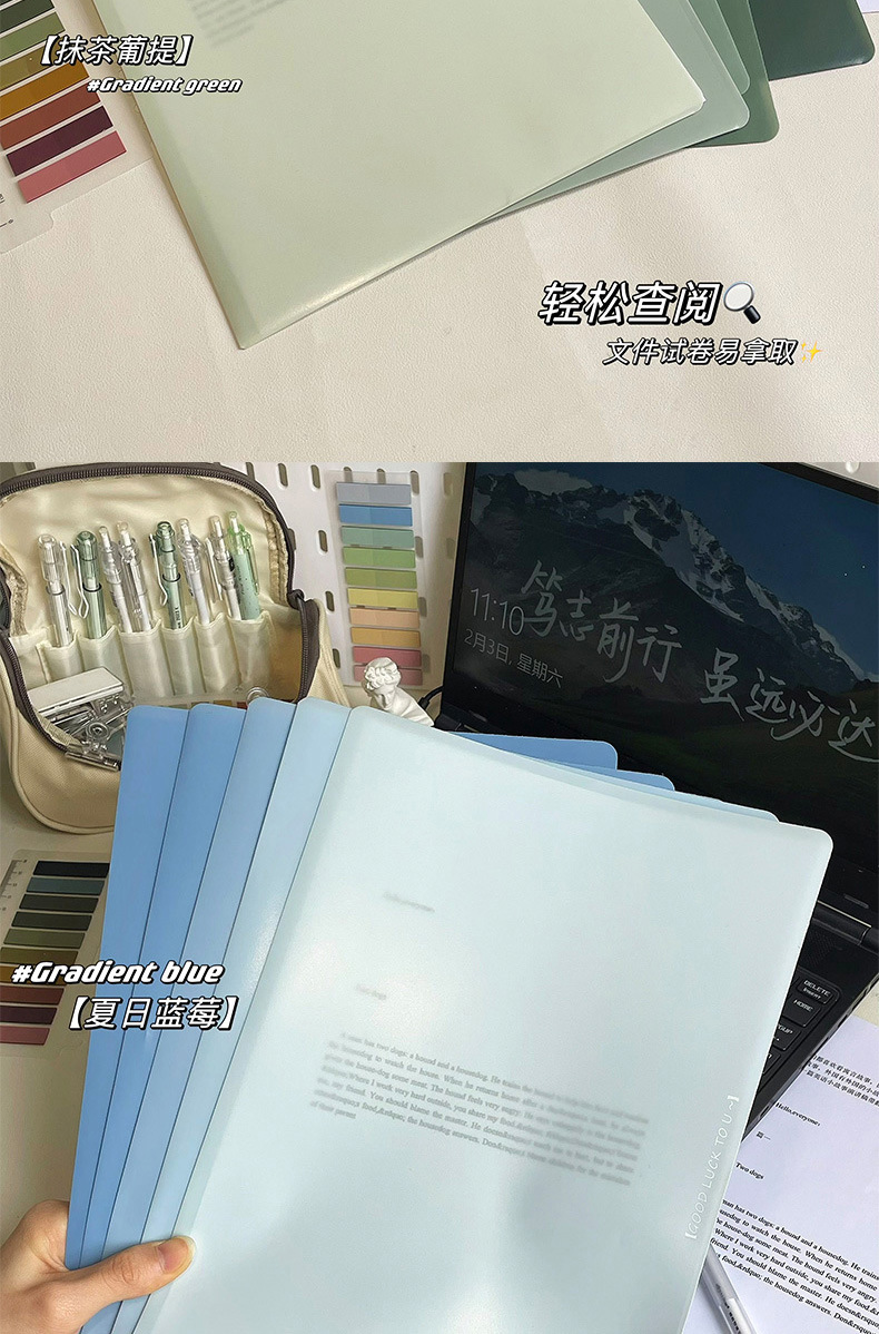 L型グラデーションシングルチップファイルa4シングルページクリップ2枚入ファイルバッグ高颜値ファイルカバー履歴書保護フィルム