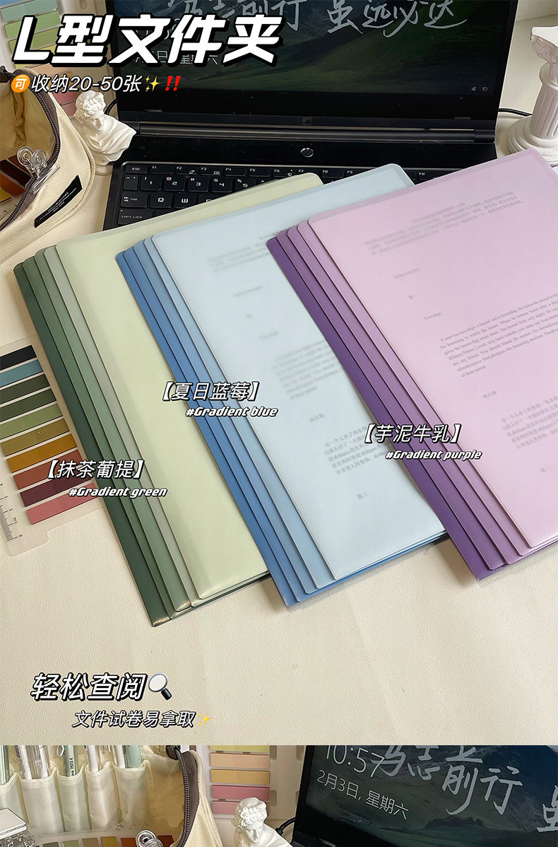 新品グラデーションL型ファイルオフィス資料収納ファイル大容量厚手学生試験巻収納クリップ