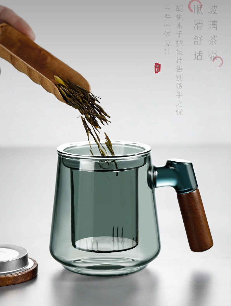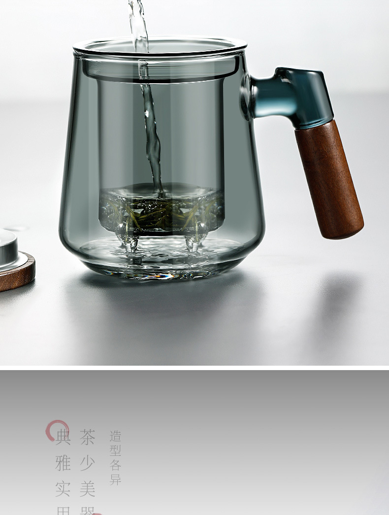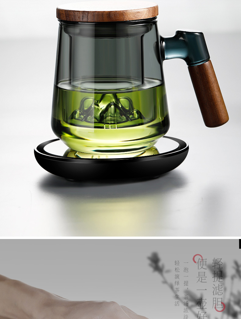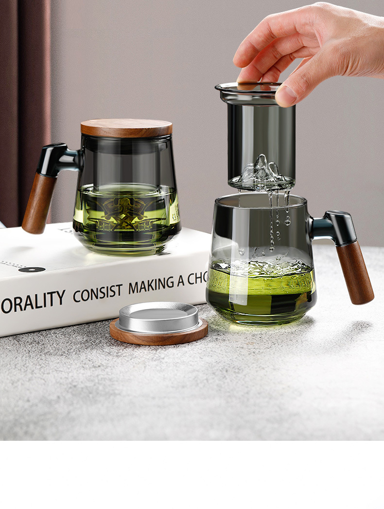 高ホウ素シリコン透明ガラス三点カップ家庭用大容量蓋付き茶水分離ティーカップ濾過お茶カップ