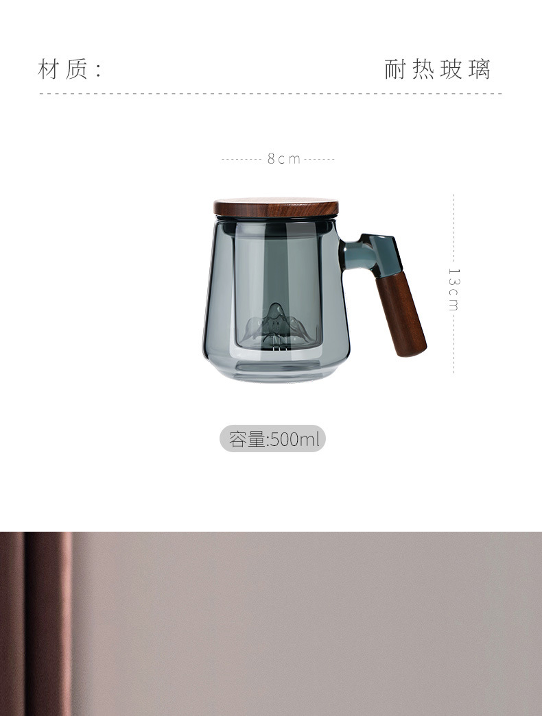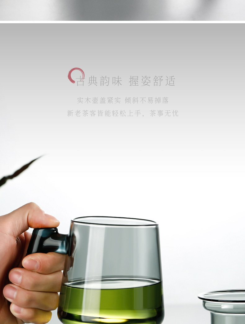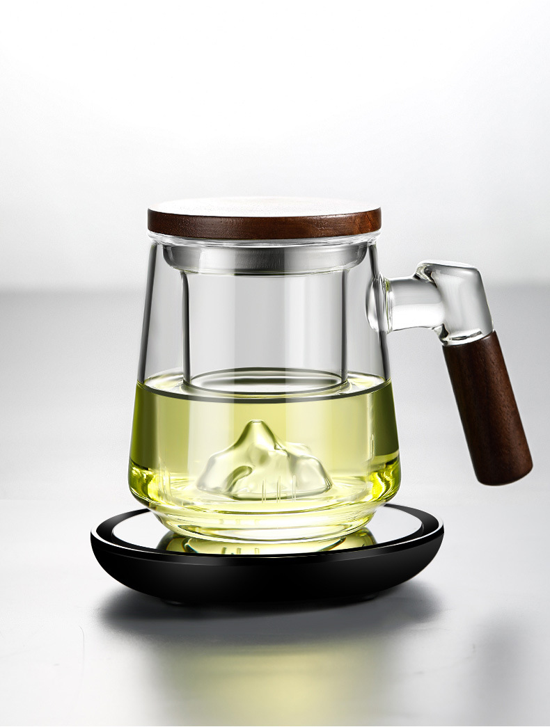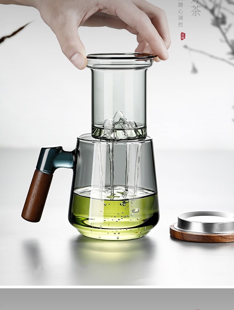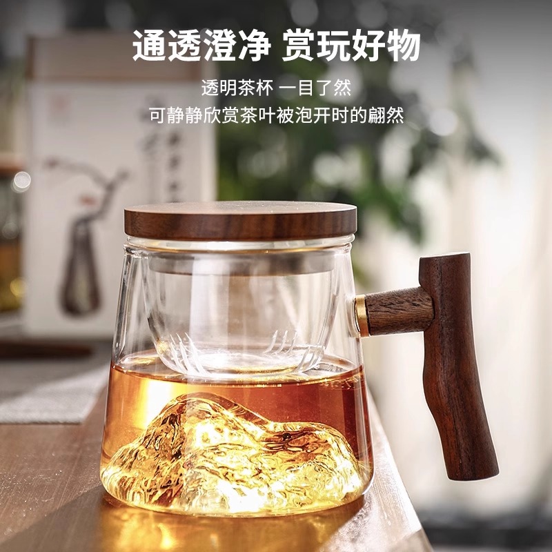 高ホウ素シリコン透明ガラス三点カップ家庭用大容量蓋付き茶水分離ティーカップ濾過お茶カップ