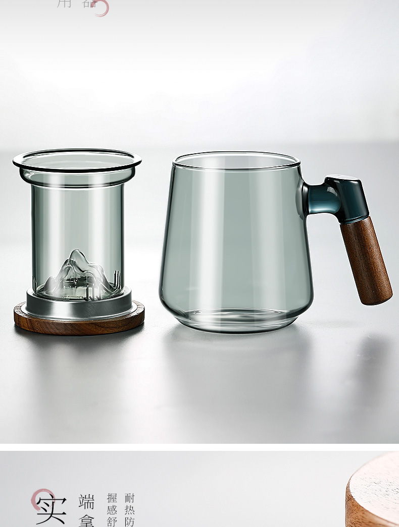 ガラスフィルターグラスカップ高温茶水分離オフィス家庭用コップミニカップ新製品