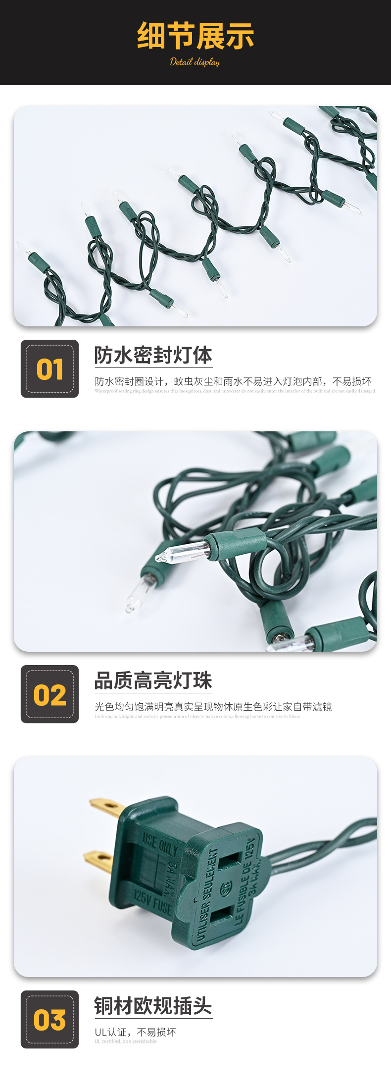 亚马逊同款美规C9 LED灯串备泡25灯烤漆五彩圣诞装饰节能防水灯串