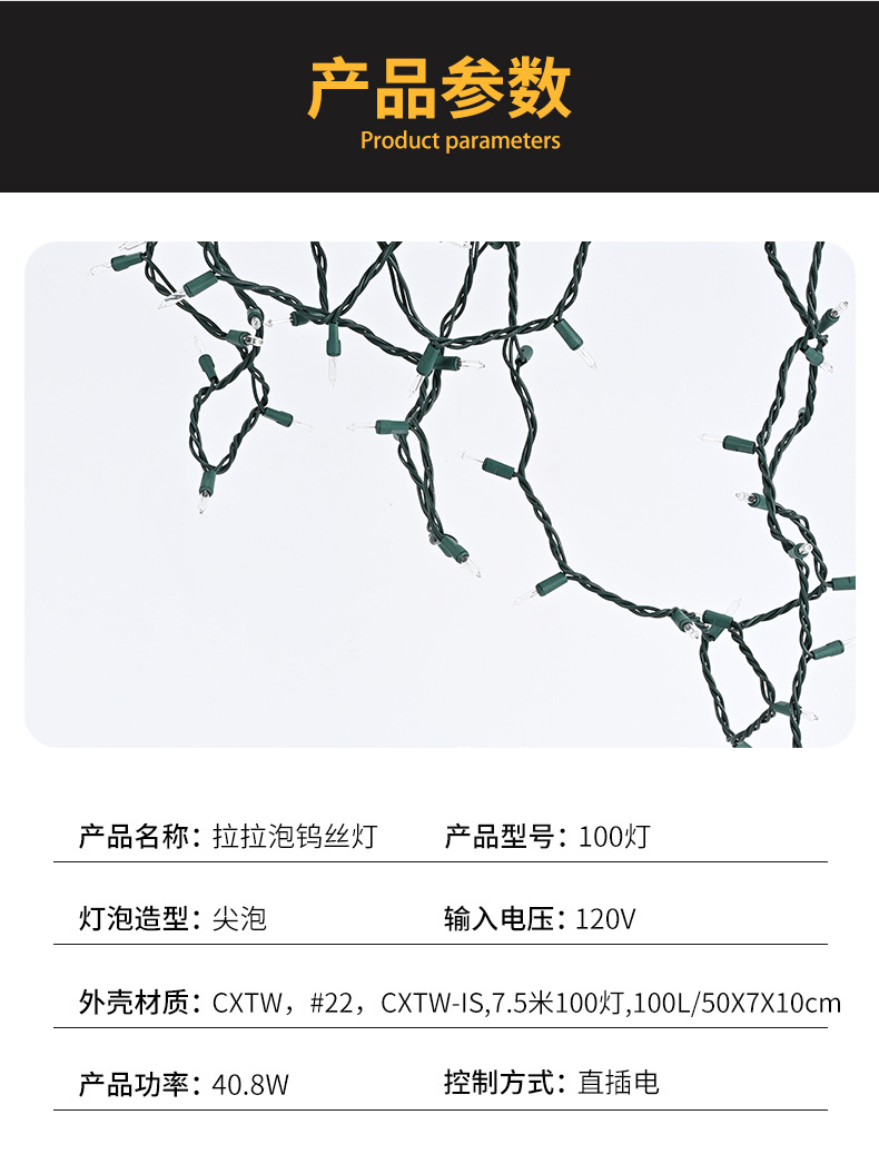 跨境热卖钨丝拉拉泡美规户外防水灯串C3尖泡圣诞节日装饰彩灯树灯