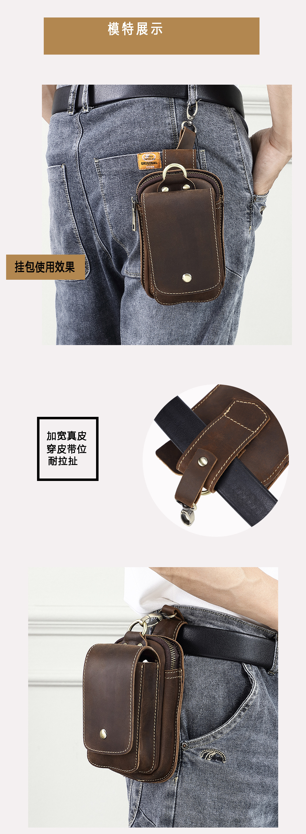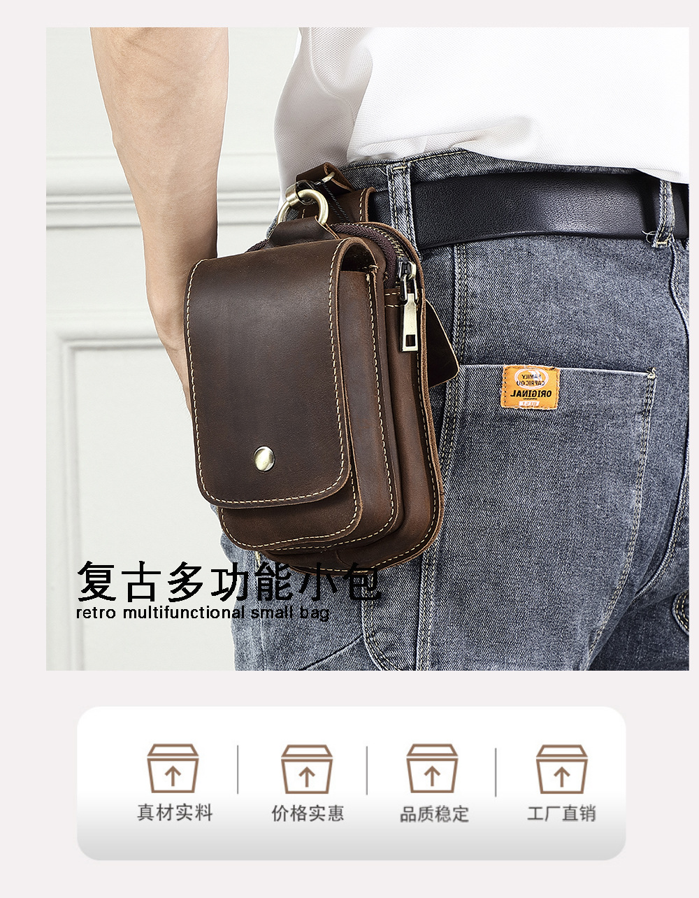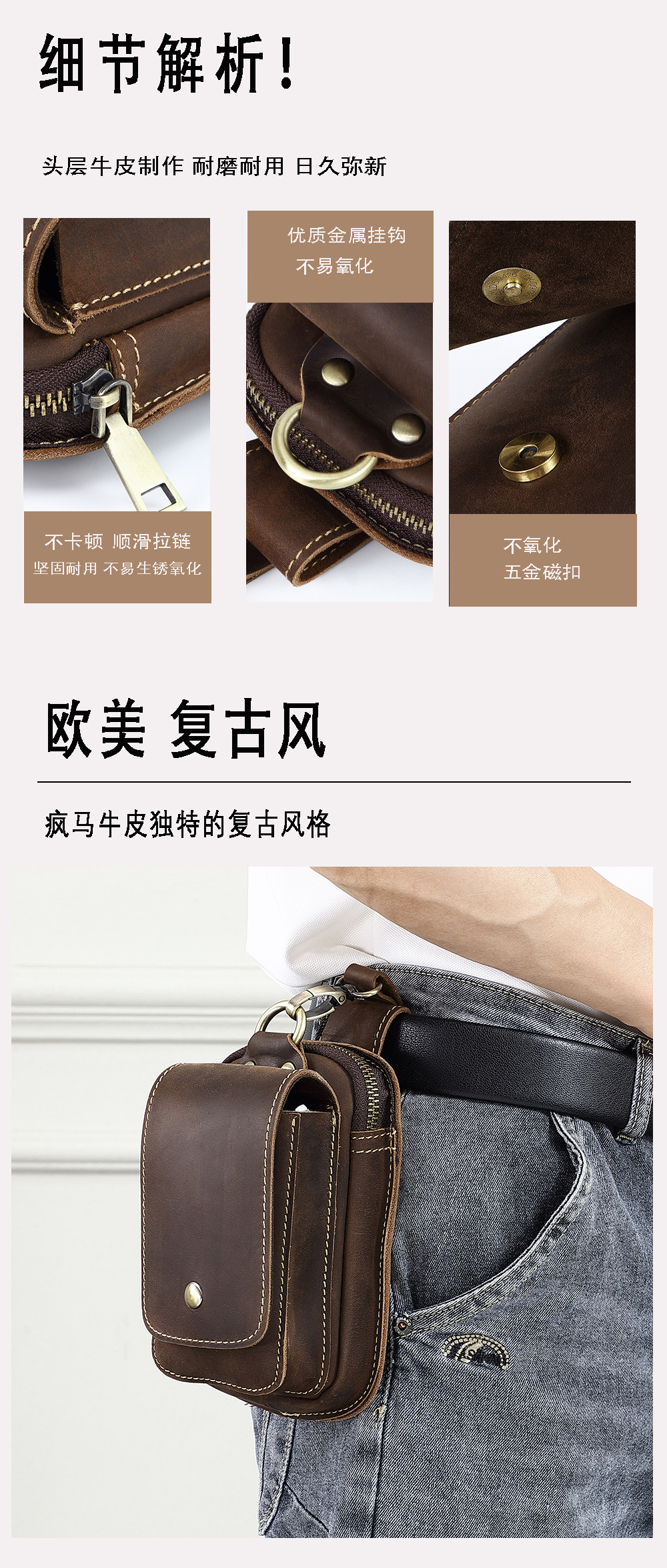 レトロ狂馬皮ウエストバッグ真皮対外貿易男性レトロ潮クール携帯電話屋外6インチフック付きウエストバッグ
