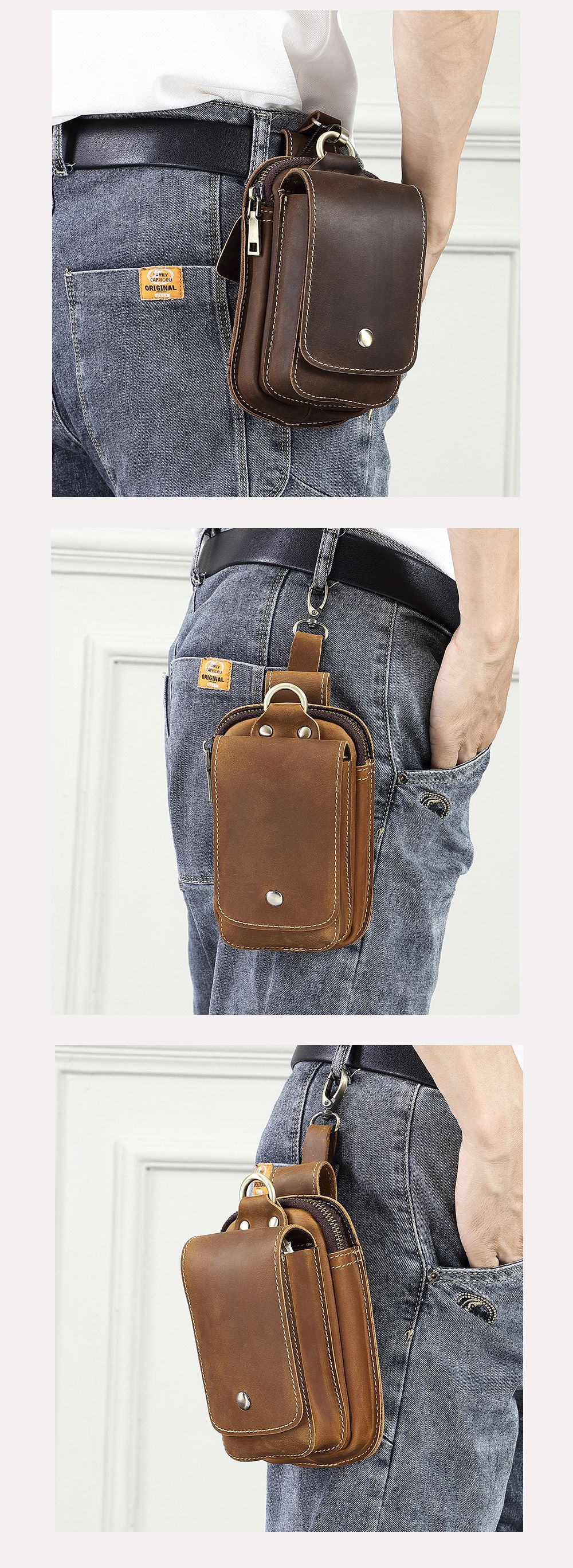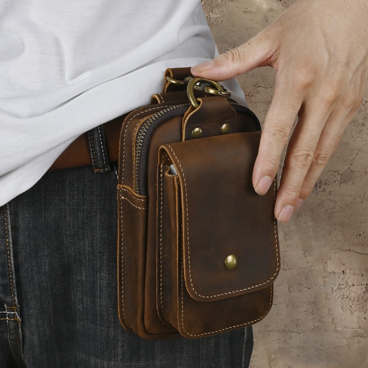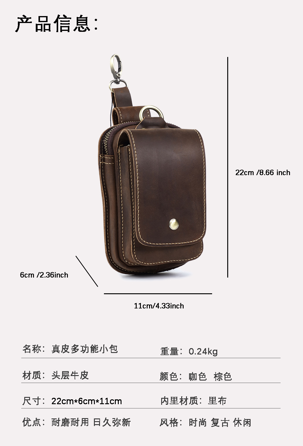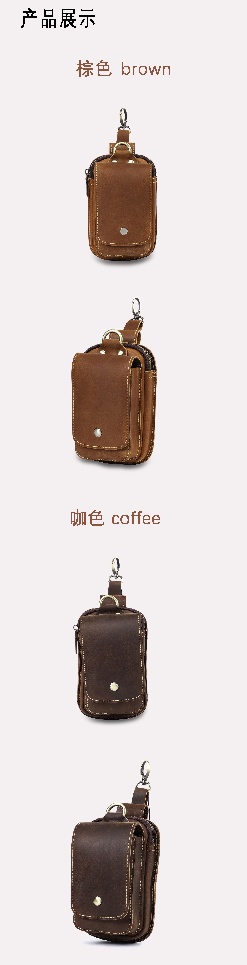 レトロ狂馬皮ウエストバッグ真皮対外貿易男性レトロ潮クール携帯電話屋外6インチフック付きウエストバッグ