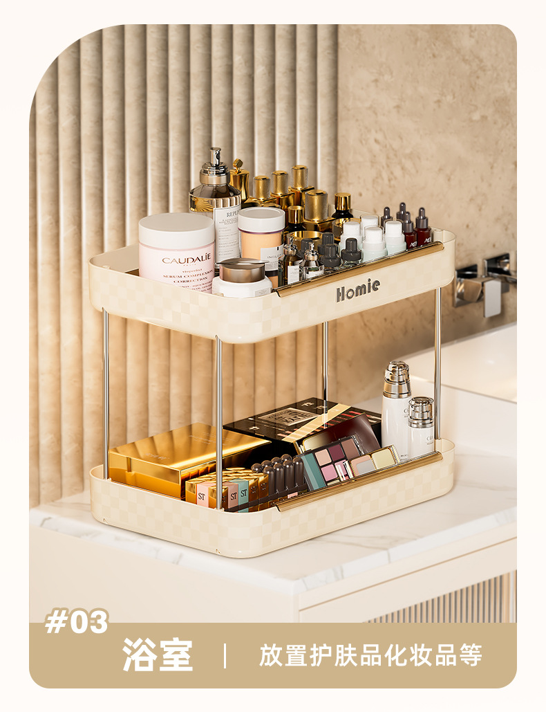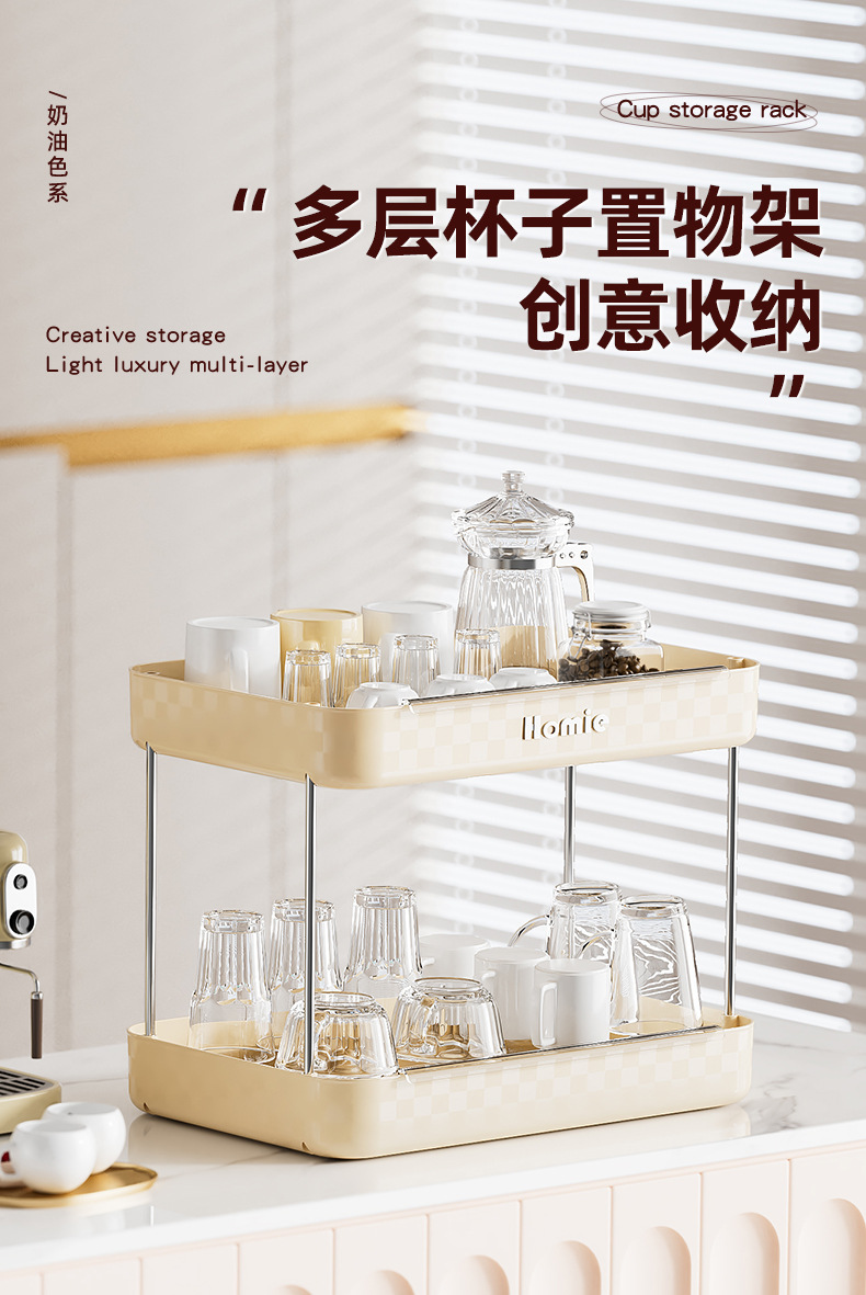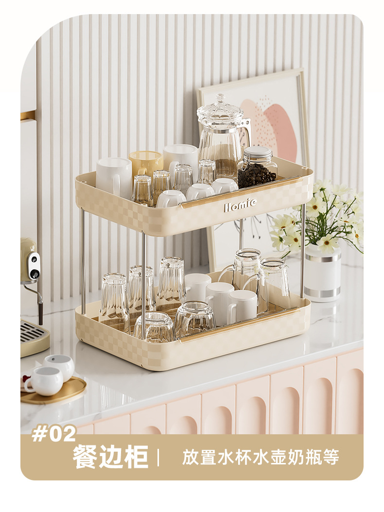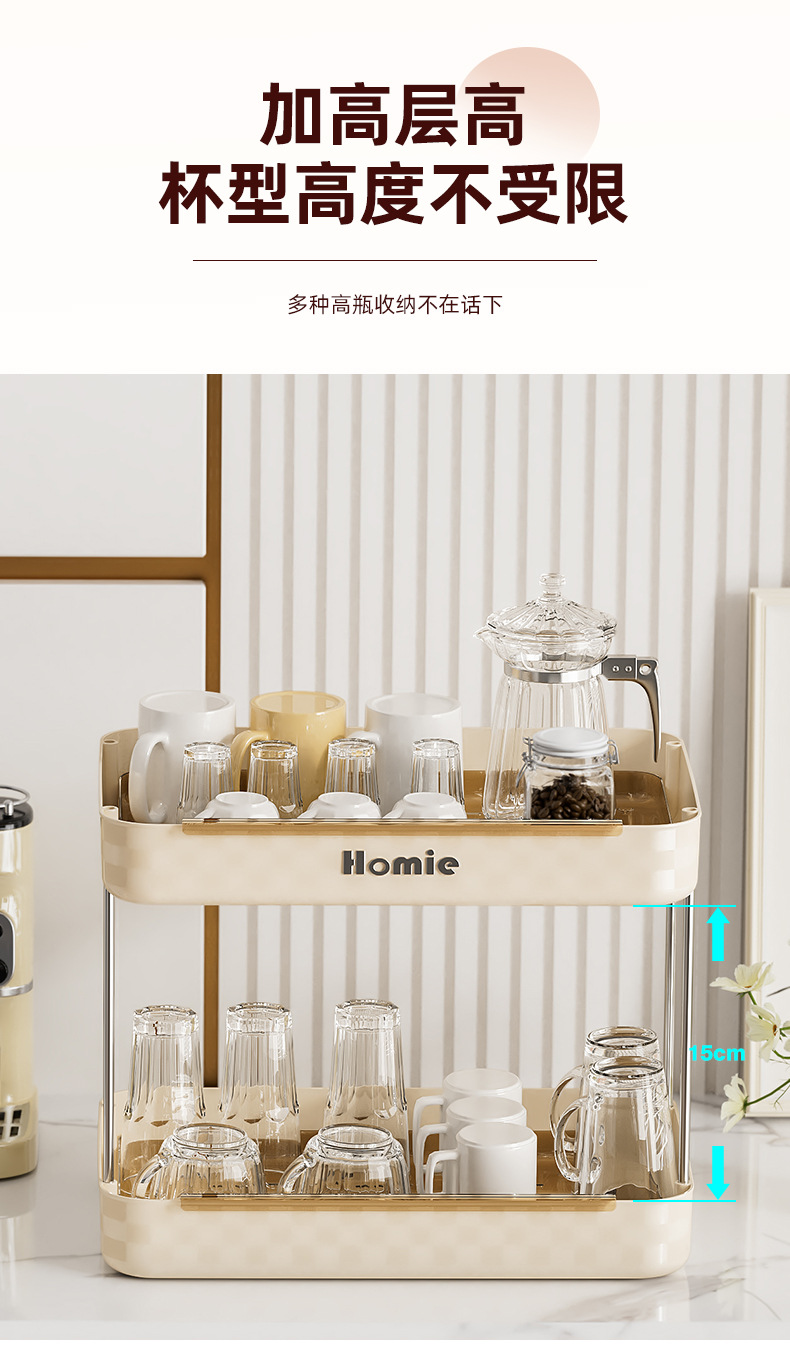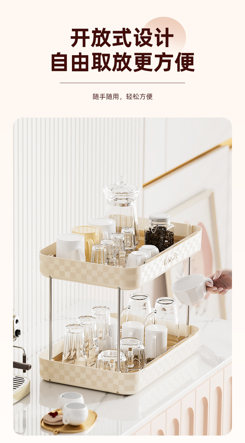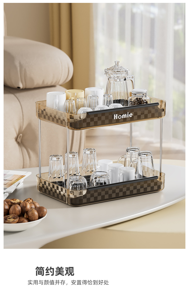 大型二層式ウォーターカップ収納ラック、多機能高級カップテーブル、化粧品整理、バーカウンター収納