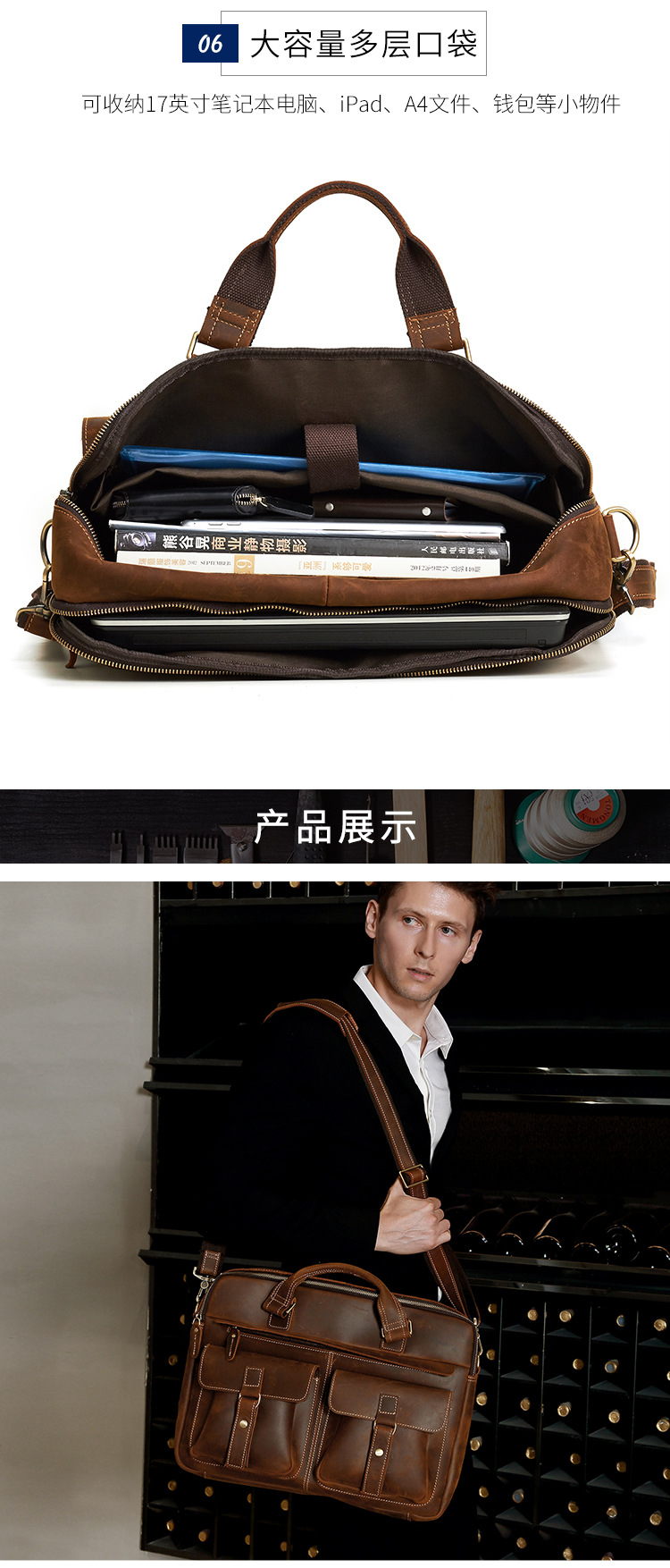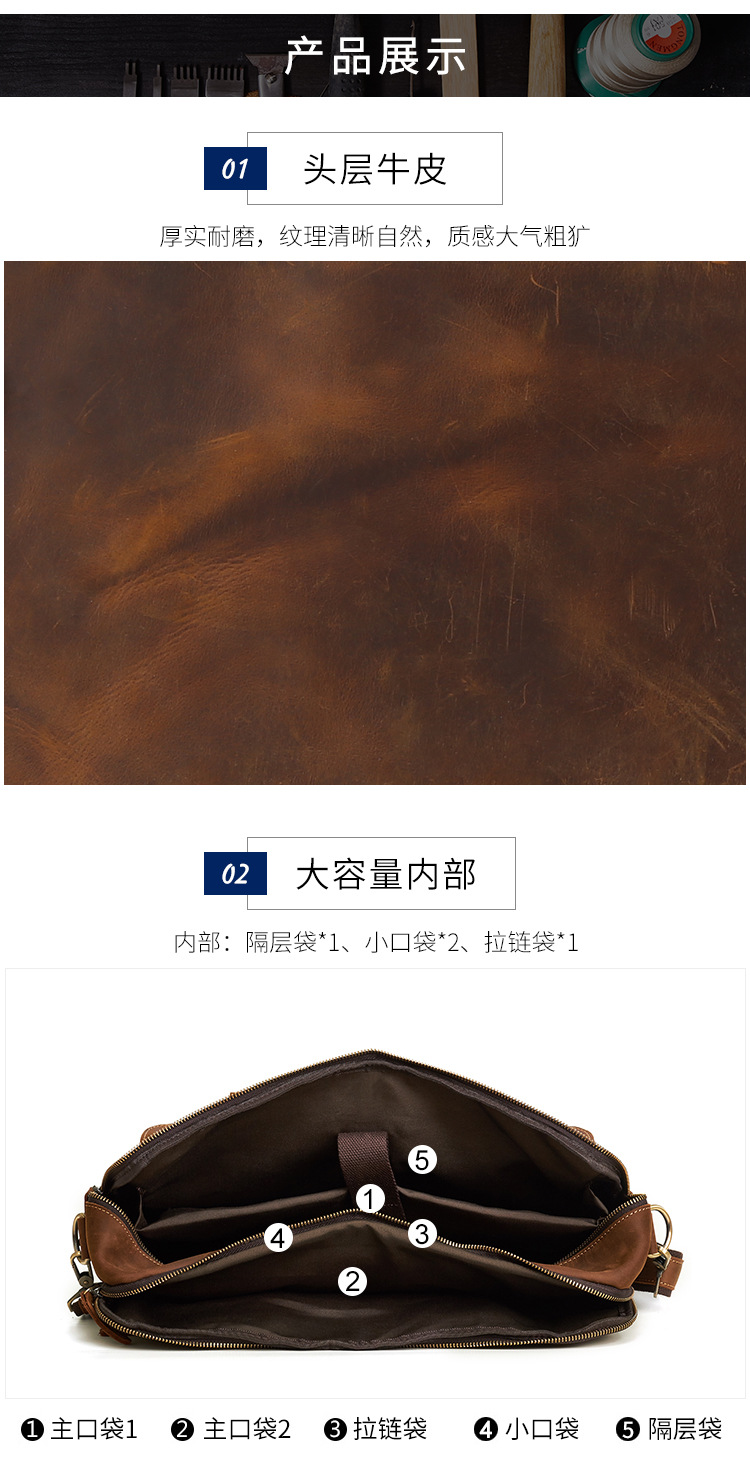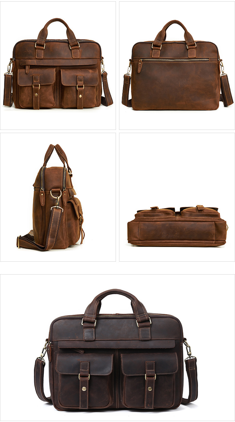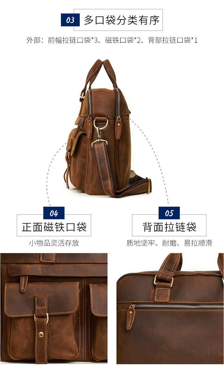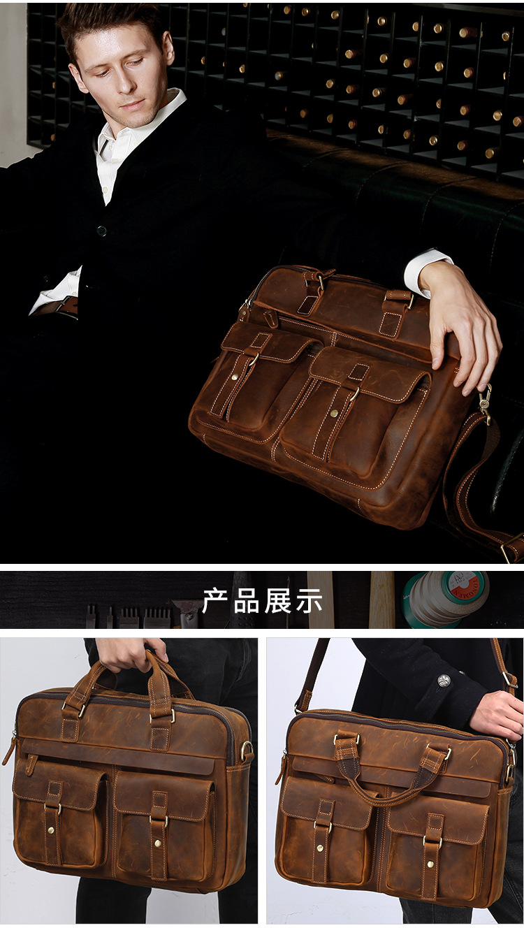 跨境热销公文包复古头层牛皮男士手提包大容量商务通勤男包单肩包