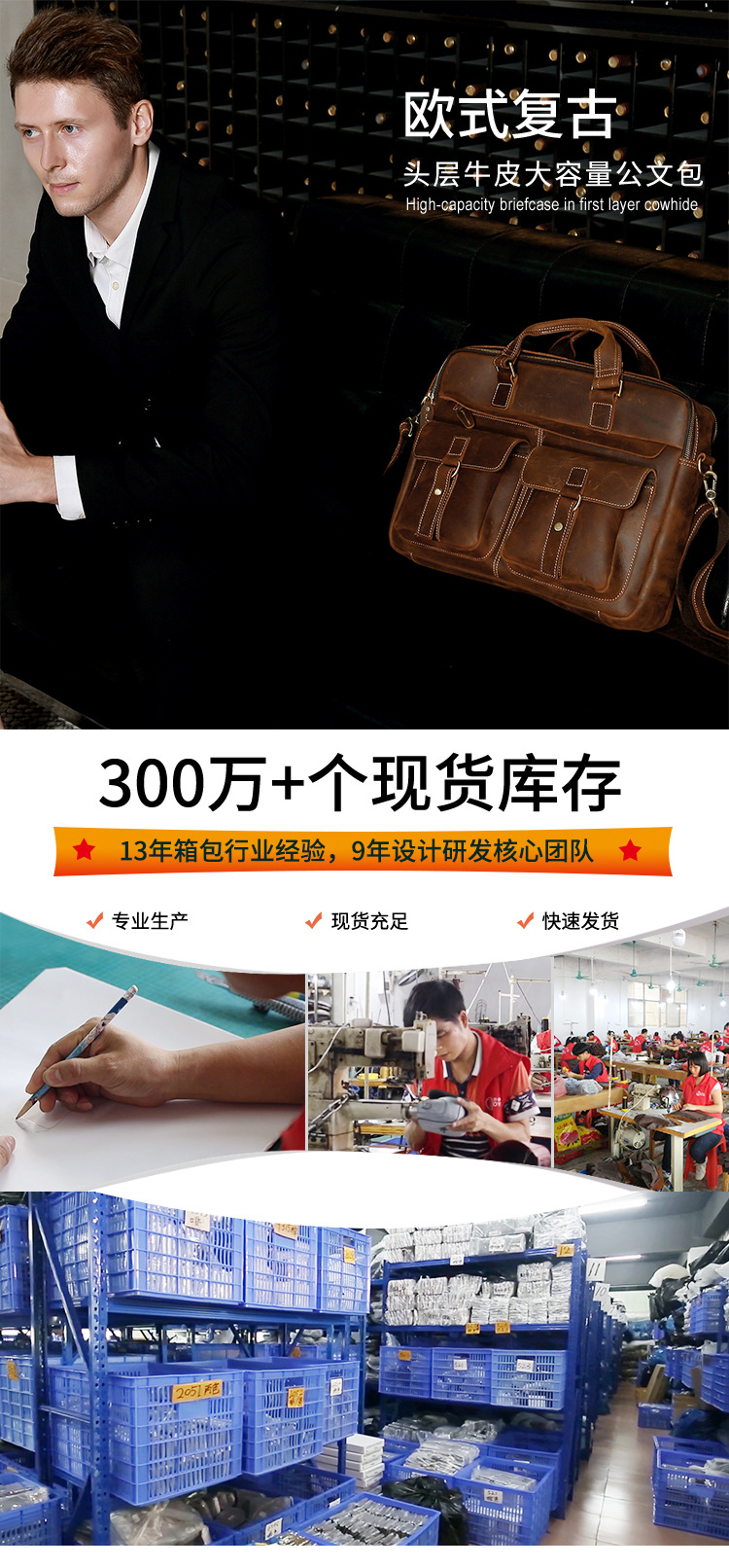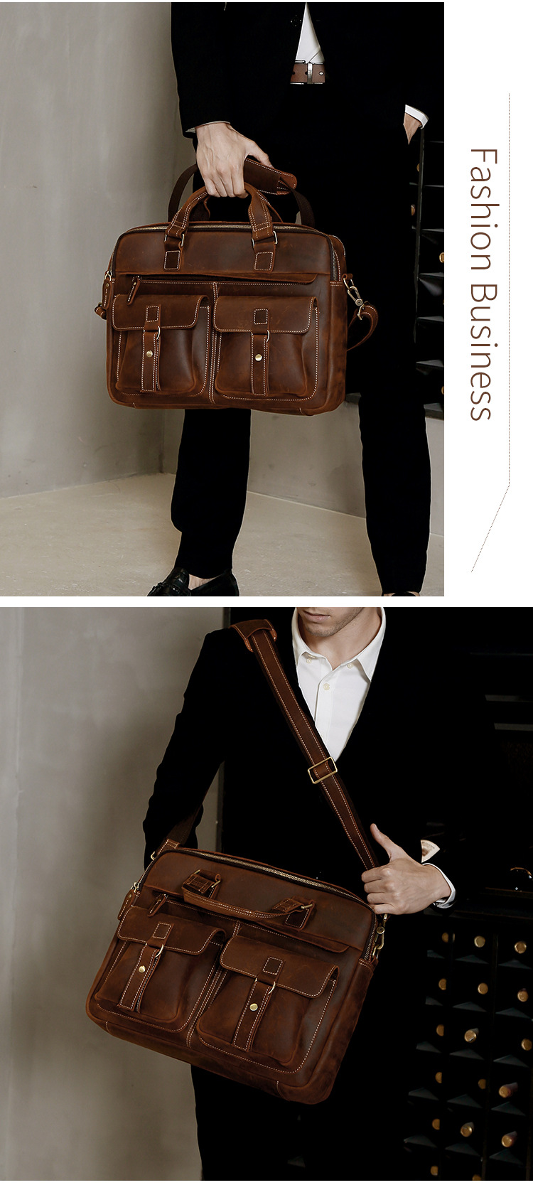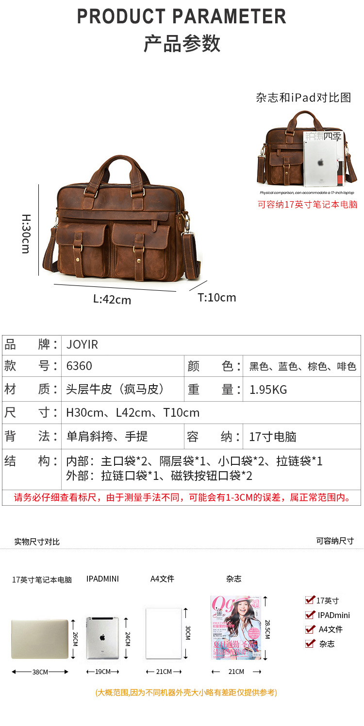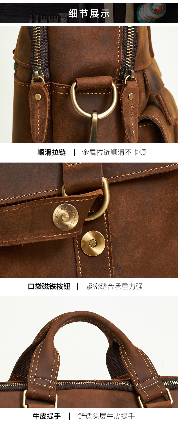 跨境热销公文包复古头层牛皮男士手提包大容量商务通勤男包单肩包