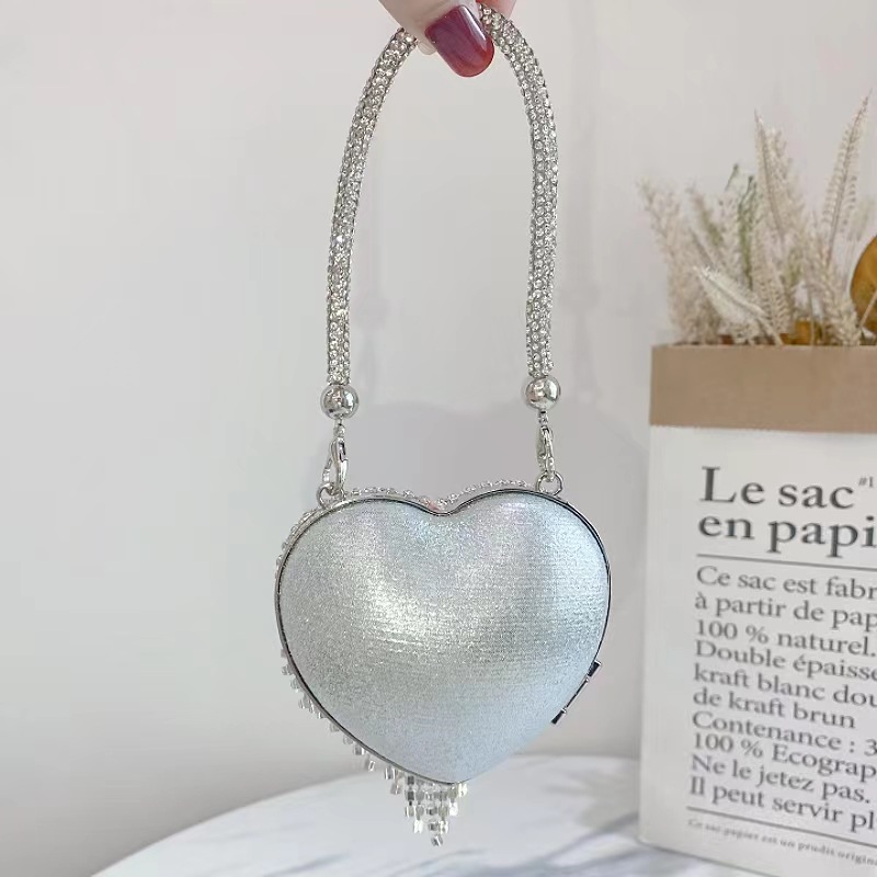 2025新款欧美时尚迷你爱心手提链条包镶钻晚宴斜挎单肩女包包
