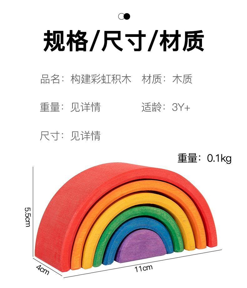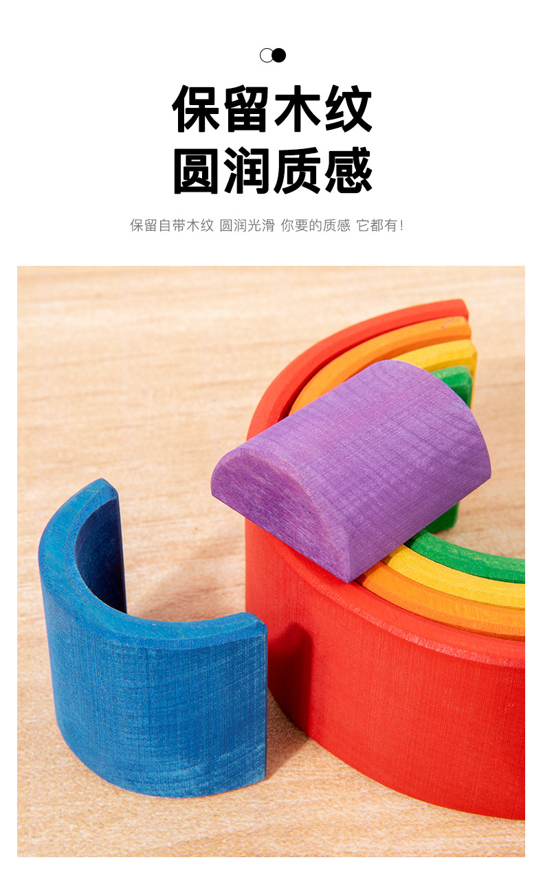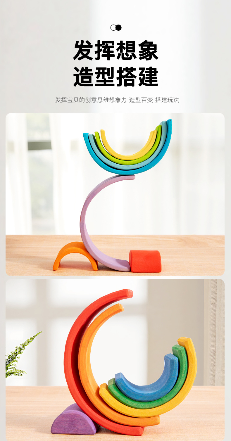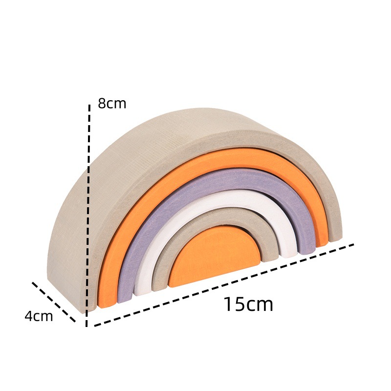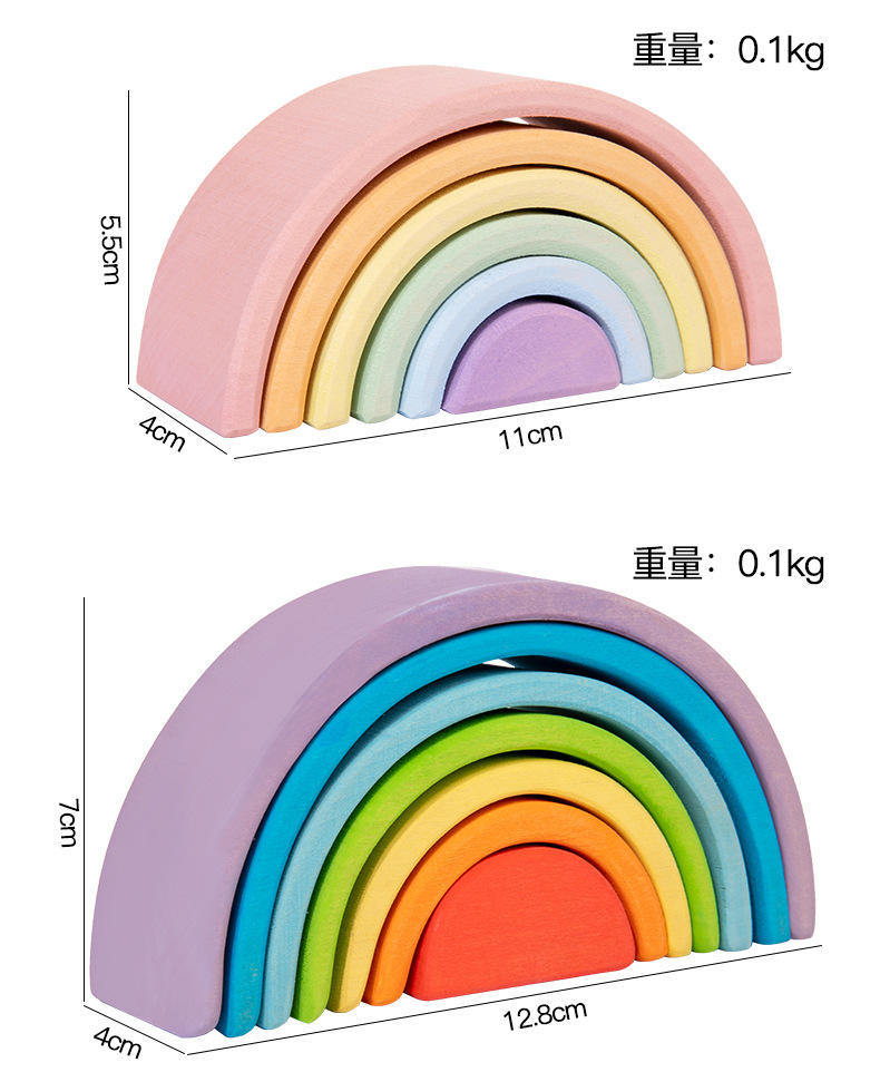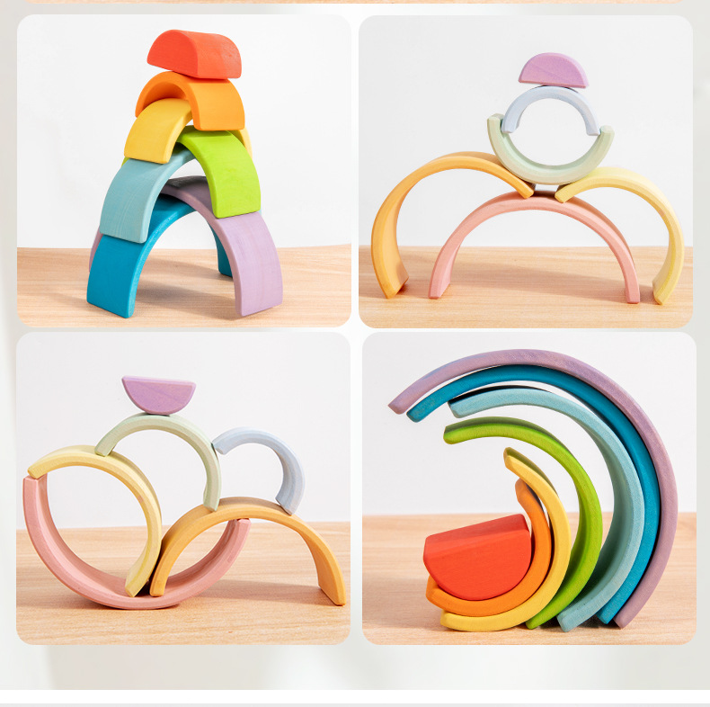 11枚の虹のアーチの厚い半月の切れの丸い積み重ねの木のつづり合わせのおもちゃの子供の早教の組み合わせのアイデアの積み重ねの楽しみ
