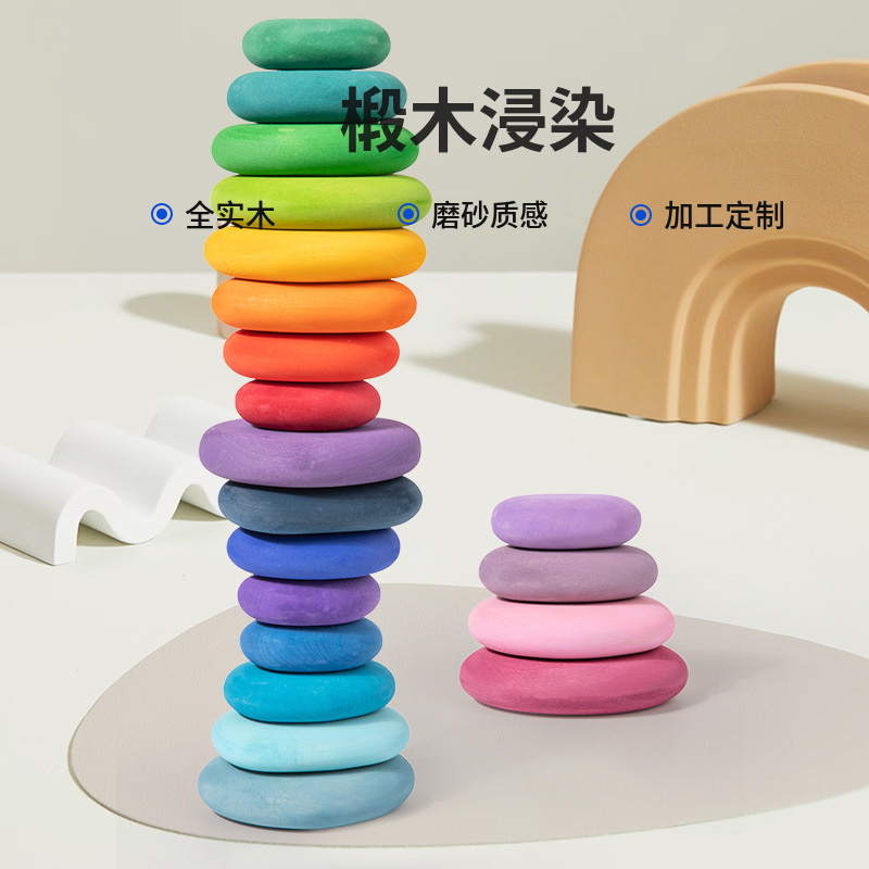 跨境椴木彩色叠石鹅卵石宝宝手眼协调玩具幼儿园大颗粒积木