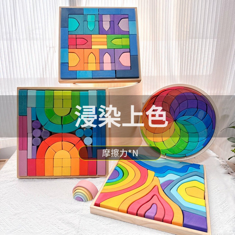 木製の小粒曼荼羅小可愛い積み木益智玩具実木小衆早教創意想像diy
