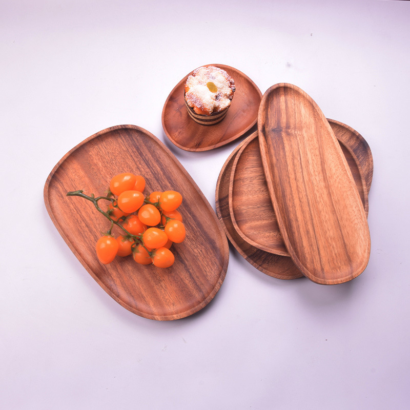 南米の胡桃の木の皿の日本式の実木の皿の果物の皿のお菓子の皿の不規則な家庭用のお茶のトレーの木製のトレー