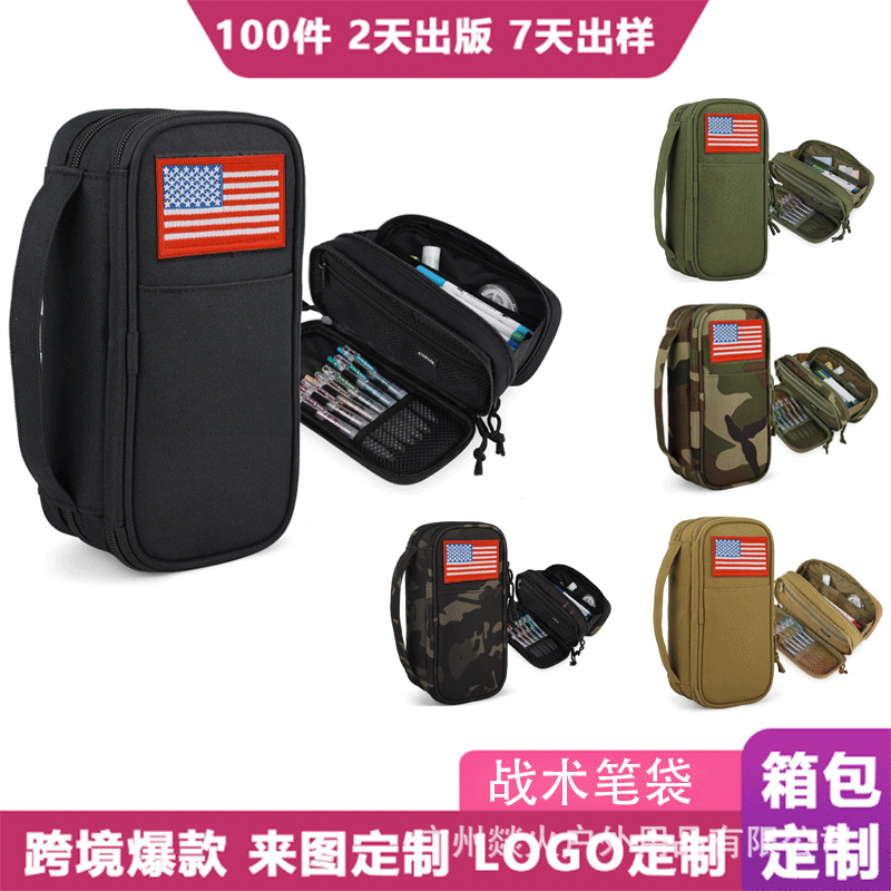 国境を越えて人気のある戦術的な筆袋文房具用品収納バッグ多仕切りファスナー金筆袋折り畳み可能多用途