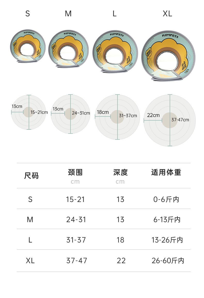 S:推奨 0-3kg [調整範囲約15~21cm],M:推奨 3-6.5kg [調整範囲約24~31cm],L:推奨 6.5-13kg [調整範囲約31~37cm],XL:推奨 13-30kg [調整範囲約37~47cm]