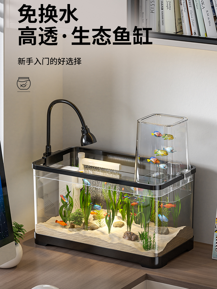 金魚鉢の小型の客間の2024の新型のデスクトップの金魚鉢の造景の生態のフルセットの濾過の酸素の一体機の渓流を製造します。