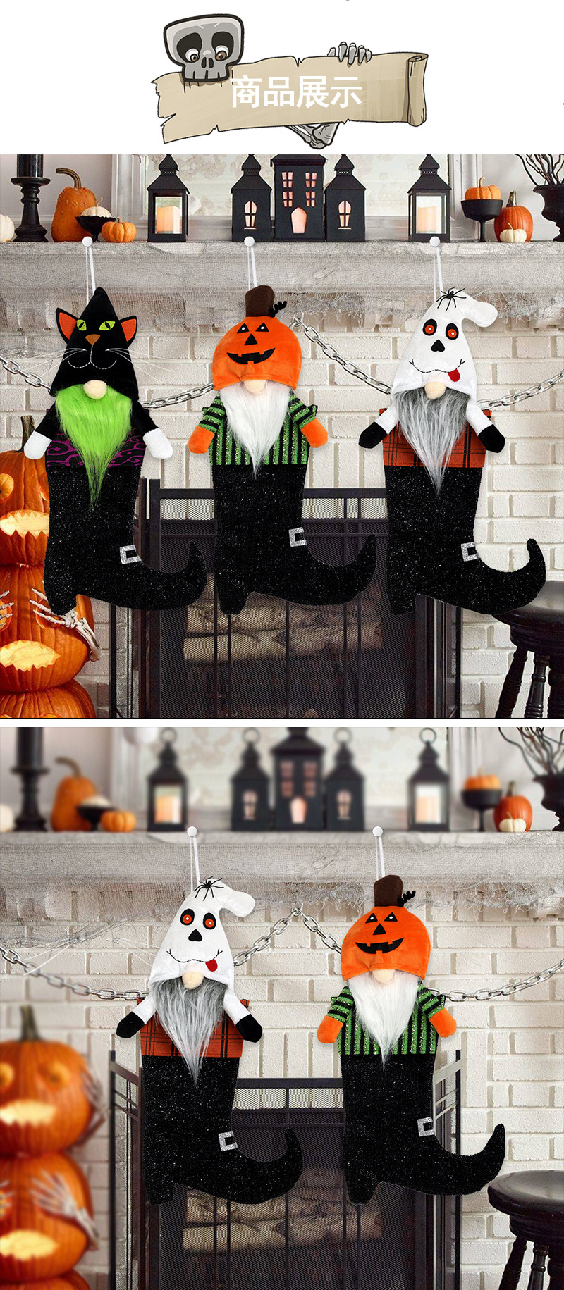国境を越えたハロウィーンギフト靴下ストラップカボチャ黒猫幽霊ブーツドア掛け靴下配置テーマパーティー装飾