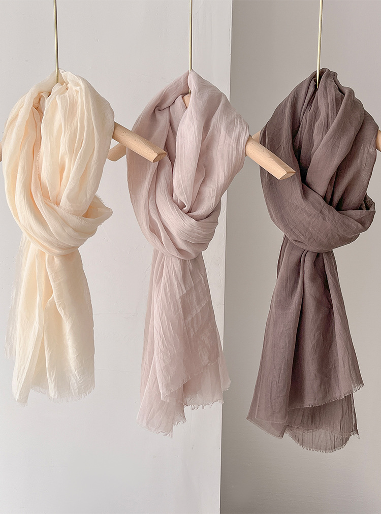 新商品の薄い無地の綿麻はマフラーの高級感を染めます。