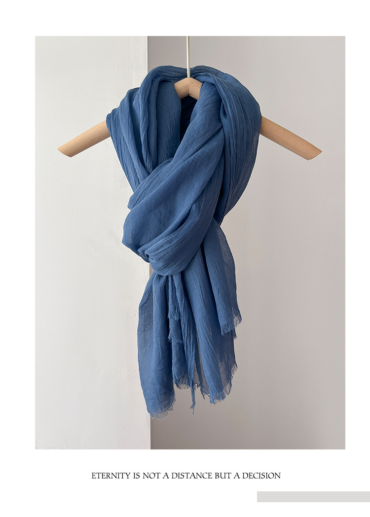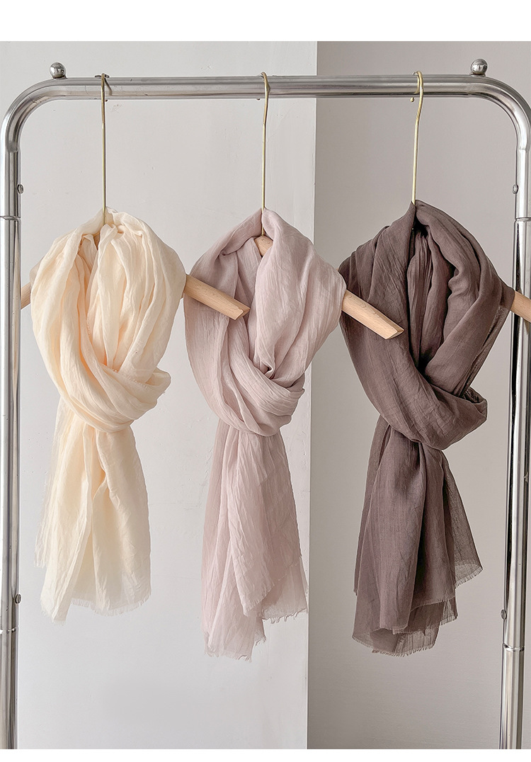 亜麻色レース綿麻薄手マフラー女性冬ストール春秋洋気ファッションマフラー純色ガーゼ