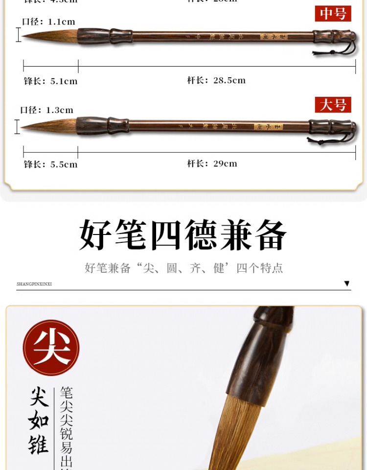 仕様 ノーステールウルフヘアー 小 [前4.3cm、直径1.0cm],ノーステールウルフヘアー【前5.1cm、直径1.2cm】,ノーステールランハオ Lサイズ [前5.5cm、直径1.3cm],ノーステールランハオ【大・中・小木箱】,ノーステールランハオ【大・中・小金箱入り】,泉月はのように小さい [前4.0cm、直径0.9cm],泉と月はの中にあります [前4.5cm、直径1.0cm],泉月はのように大きい[前5.0cm、直径1.1cm],泉月如【大・中・小木箱】,泉月如【大・中・小錦箱】,黒檀狼毛 小 [前4.5cm、直径1.0cm],黒檀ウルフヘア【前5.0cm、直径1.1cm】,黒檀ウルフヘア 大 [先端5.5cm、直径1.2cm],黒檀狼毛【大・中・小木箱】,黒檀狼毛【大・中・小金箱入り】