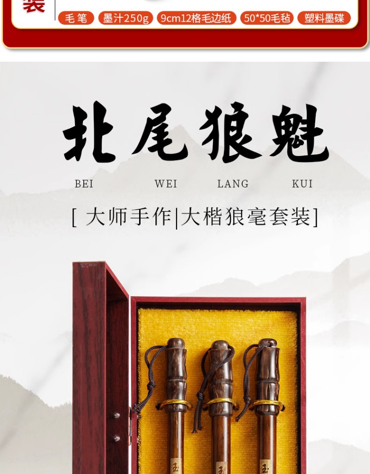 お祝いギフトに彫刻可能な毛筆書道専用狼毛と中楷湖筆楷書高級セット